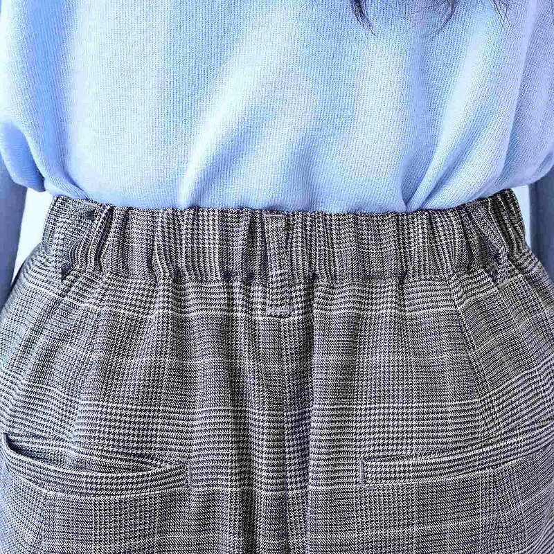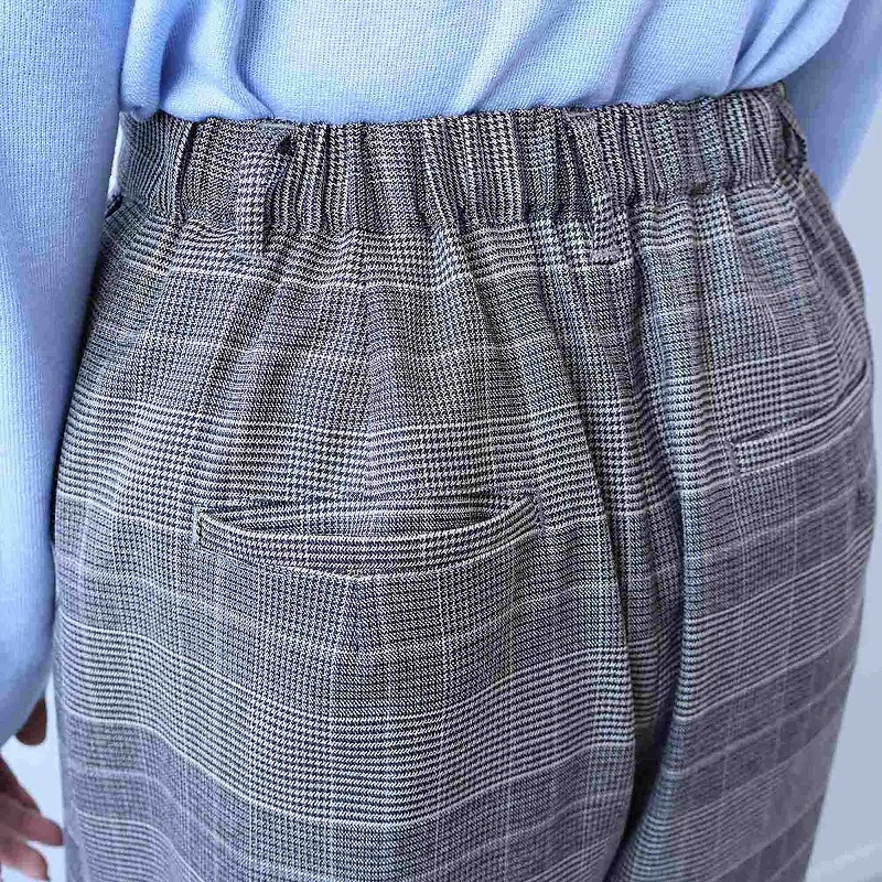 フロントはきちんと見えするファスナー開き、後ろウエストはゴム仕様なので、締め付け感がなく快適な穿き心地です。