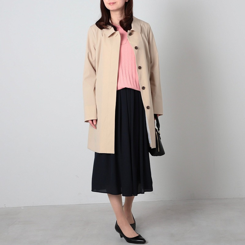 きちんと感がありながら様々なシーンで着回ししやすい、シンプルで洗練されたステンカラーコートです。