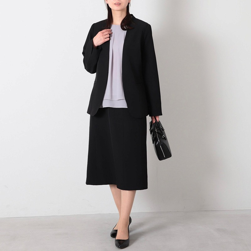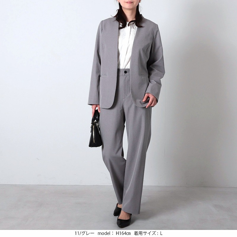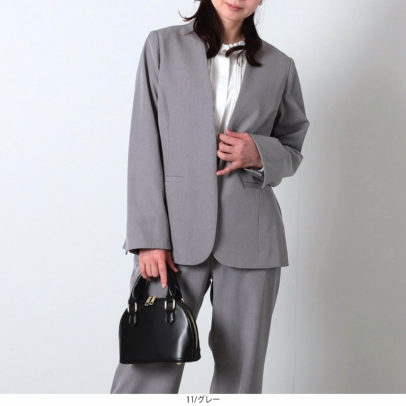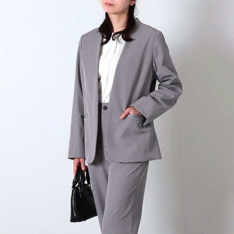 同素材のスカート〈361211〉やパンツ〈361212〉と合わせれば、統一感のあるフォーマルスタイルが完成します。