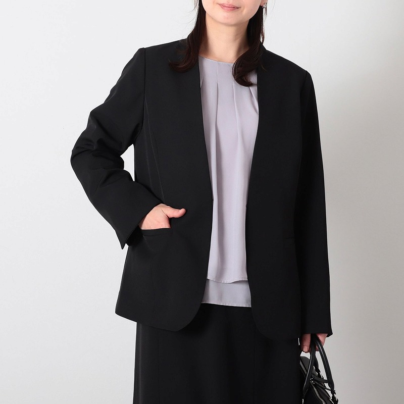ハレの日も、きちんと見せたい日も。美シルエットを叶えるノーカラージャケット。