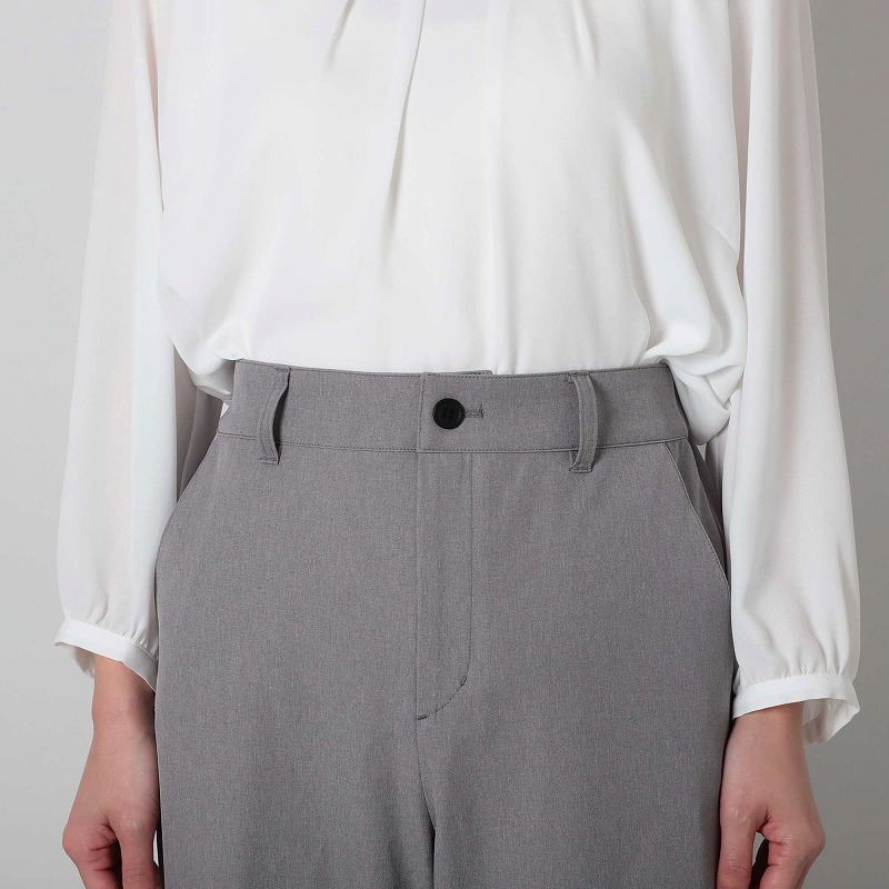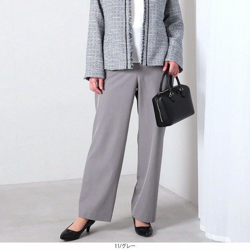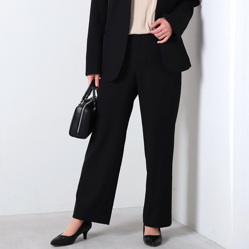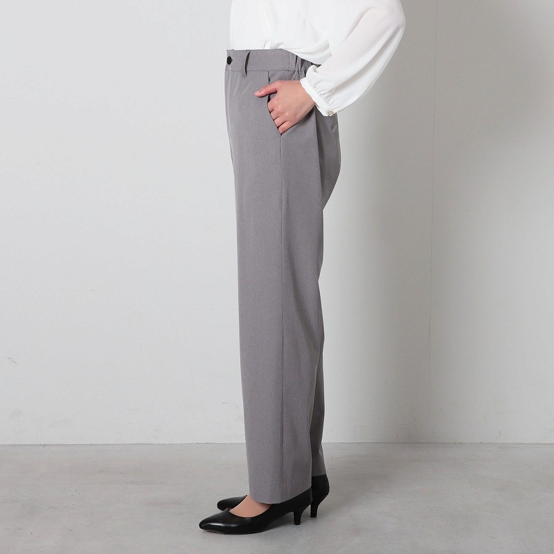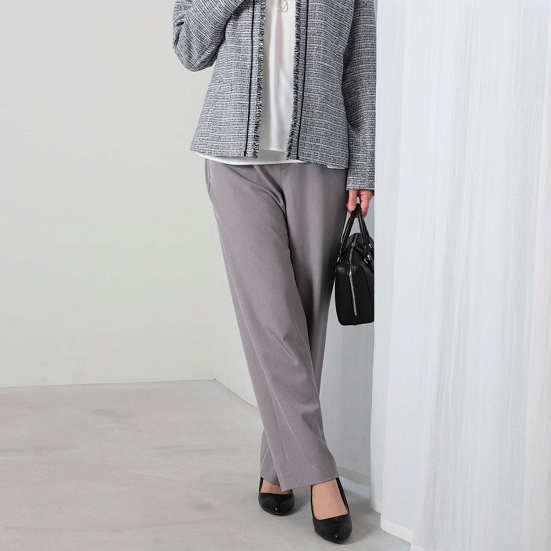 裾巾を少し広くしたストレートシルエットは、脚のラインを拾いすぎず、程よいゆとりで自然とスタイルアップを叶えます。
