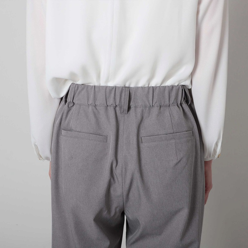 フロントはすっきりとしたファスナー開きながら、ウエスト後ろ部分はゴム仕様なので、締め付け感がなく楽ちんな穿き心地。
