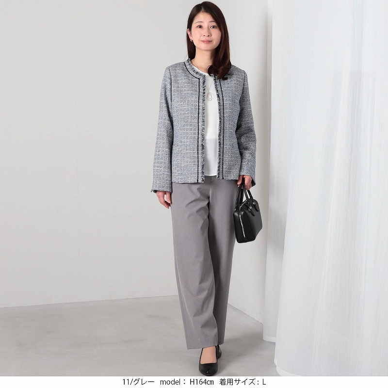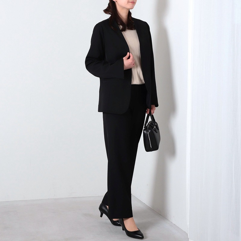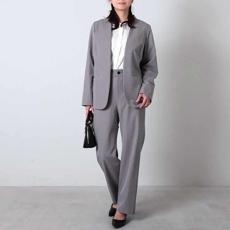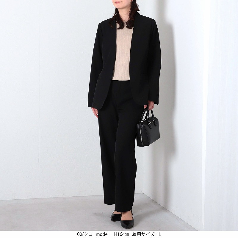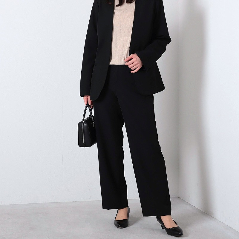 同素材のジャケット〈361210〉とセットアップで着用すれば、即座に完成度の高いオフィススタイルが完成!