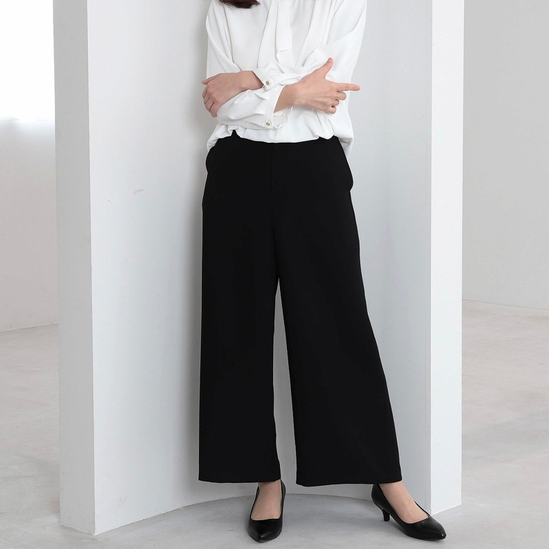 脚のラインを拾わず、すらっとした美シルエットを叶えるストレートシルエットのワイドパンツです。