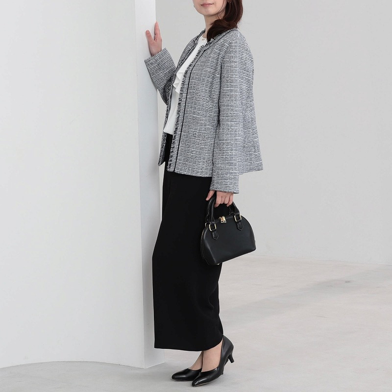 同素材のジャケット〈361306〉やブラウス〈361213〉と組み合わせれば、トータルで洗練されたビジネスやセレモニースタイルが完成します。