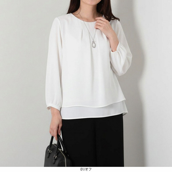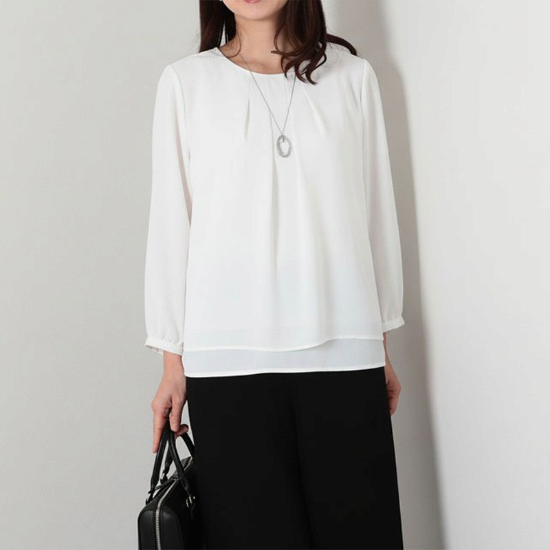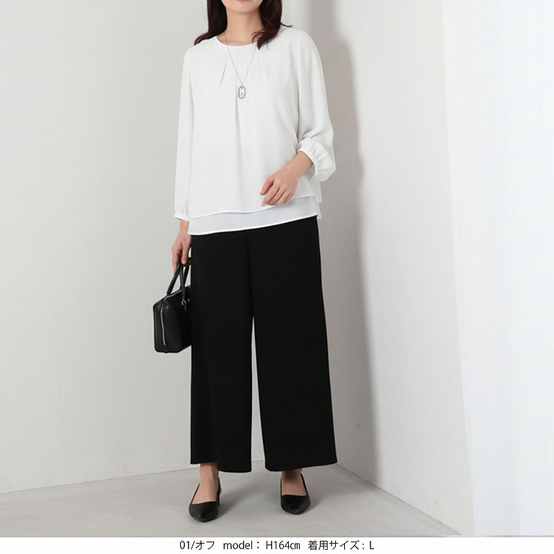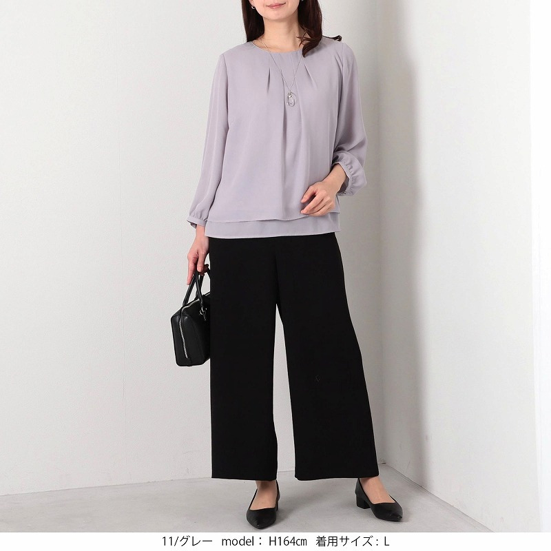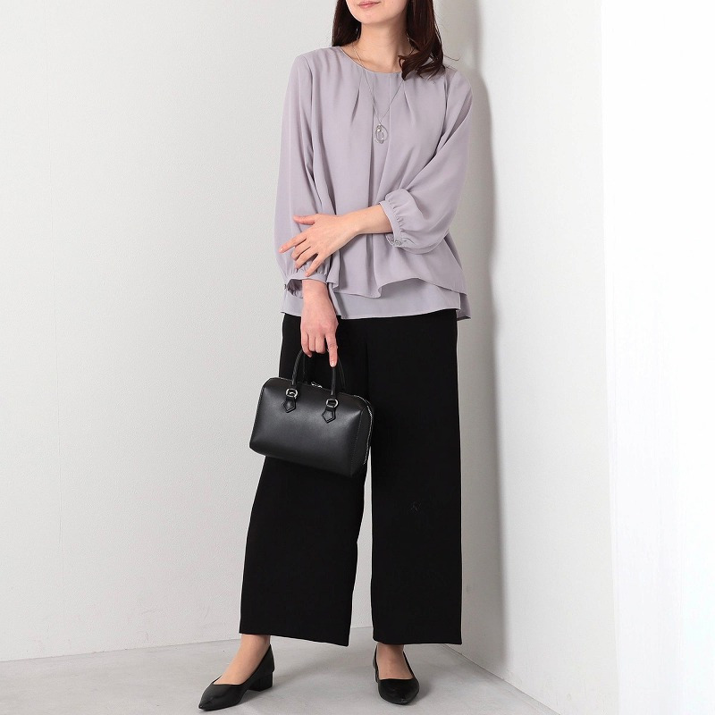 キレイめのデザインでビジネスシーンはもちろん、柔らかい素材のスカートやツイードなど華やかな素材のアイテムと合わせればオケージョンシーンでも使えるブラウスです。