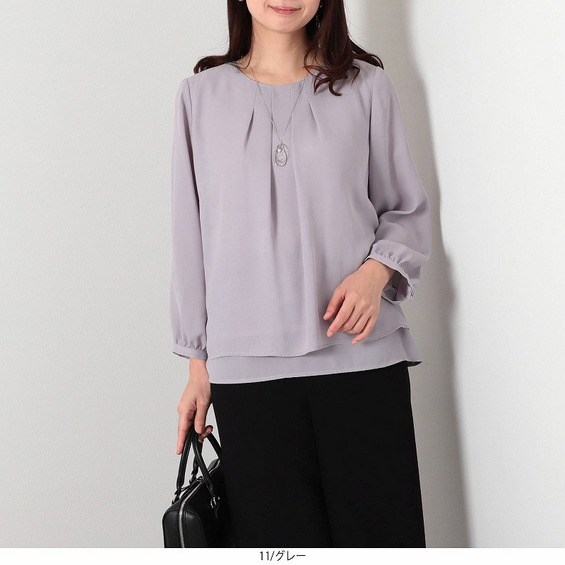 ジョーゼットきれいめ タック ブラウス LL/3L/4L/5L/6L fleur by mint breeze