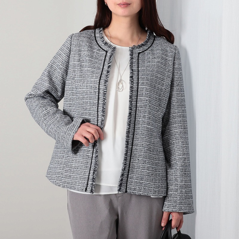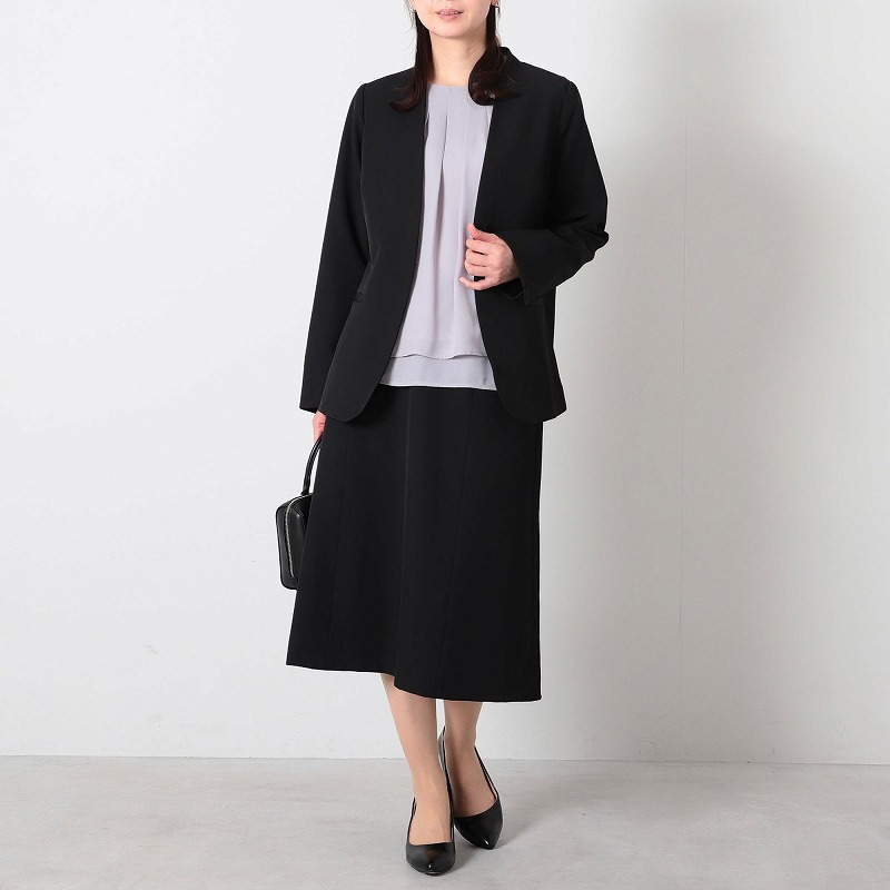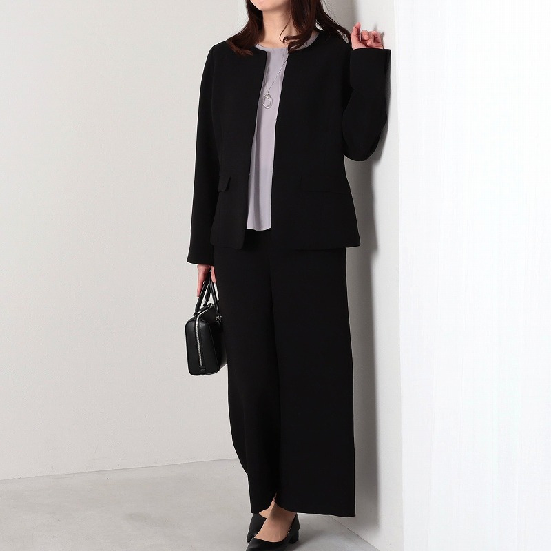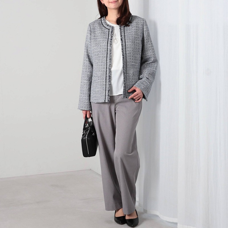 スーツとのスタイリングは女性らしいフェミニンな印象になりおススメです。