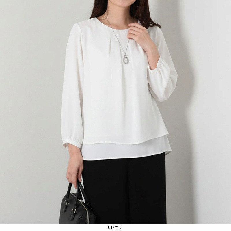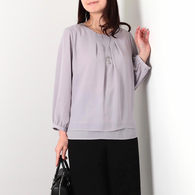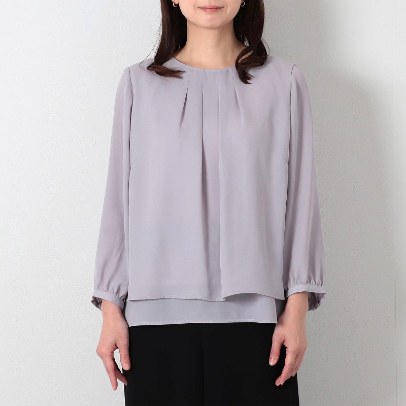 ネックラインにタックをあしらった上品でフェミニンなブラウスです。