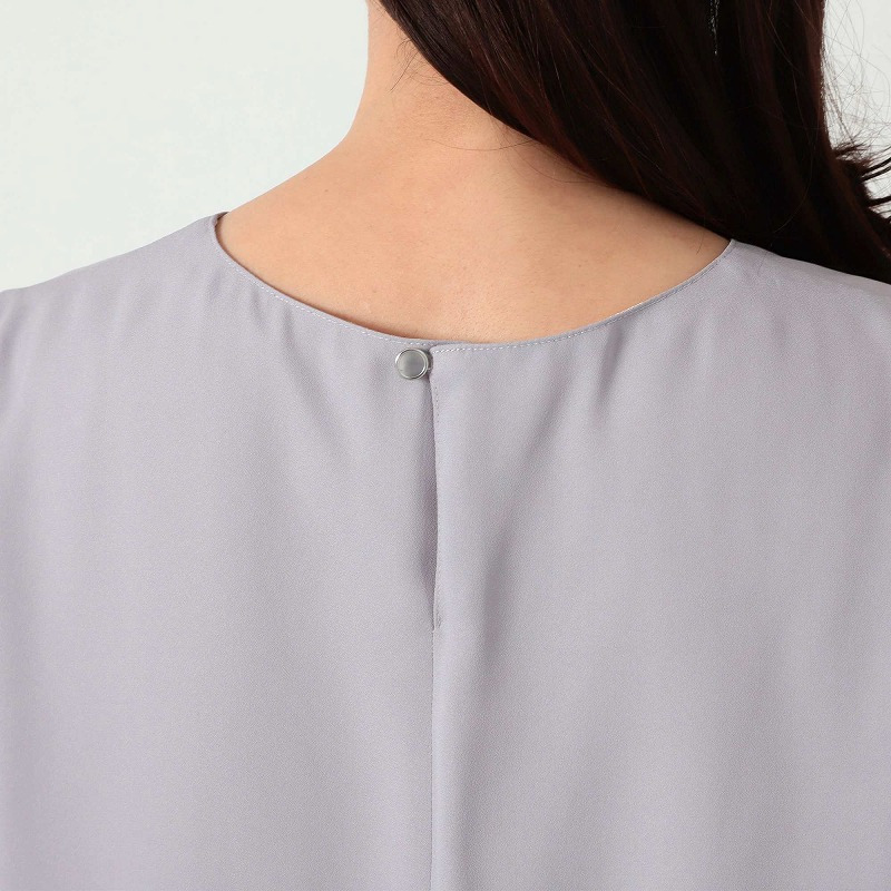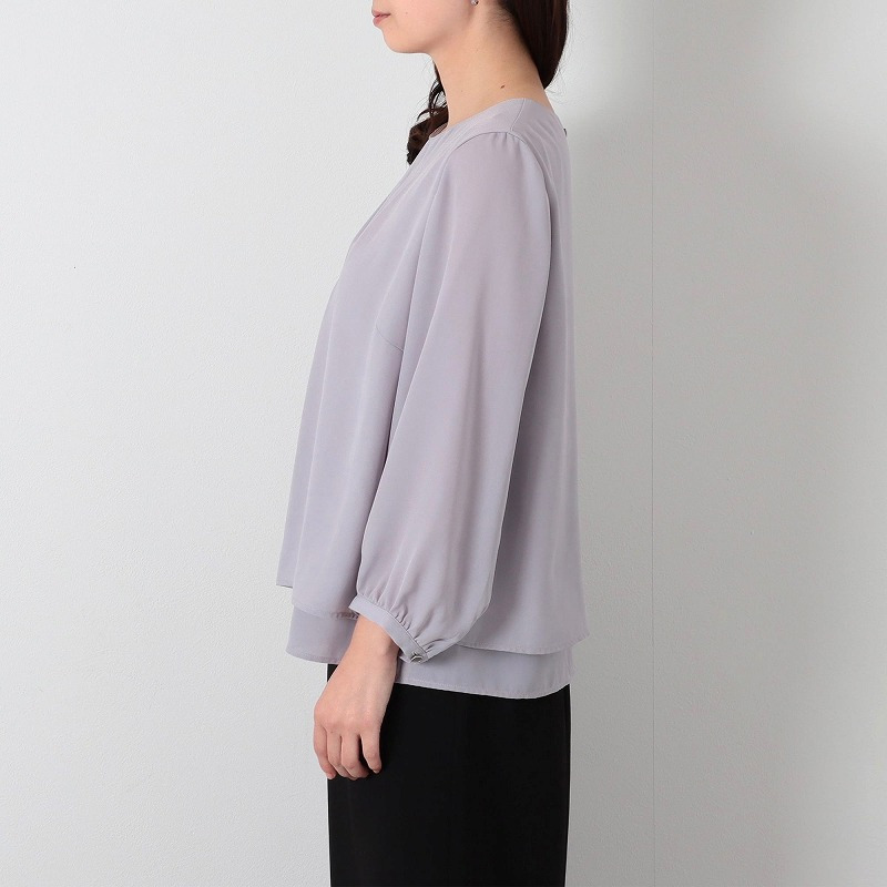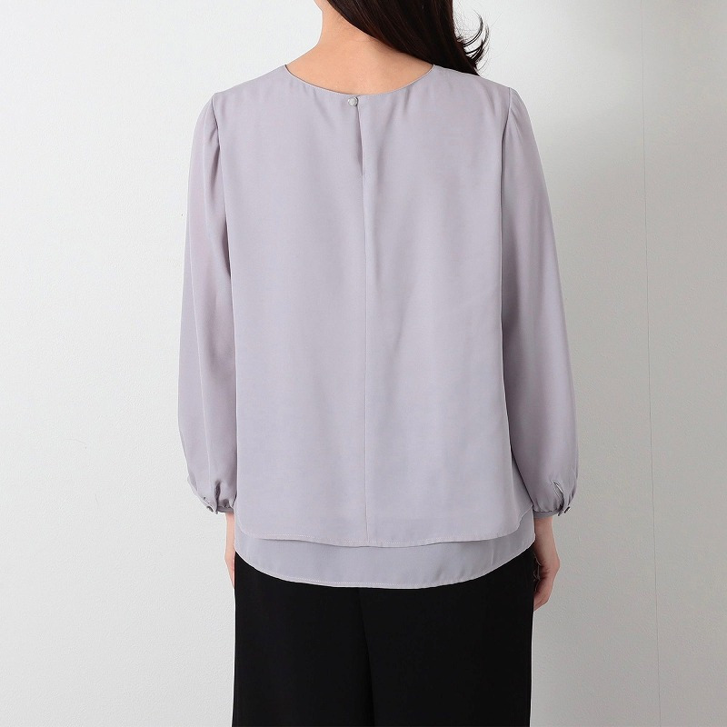後ろボタン開きのプルオーバータイプのブラウスでクラシカルな印象に。