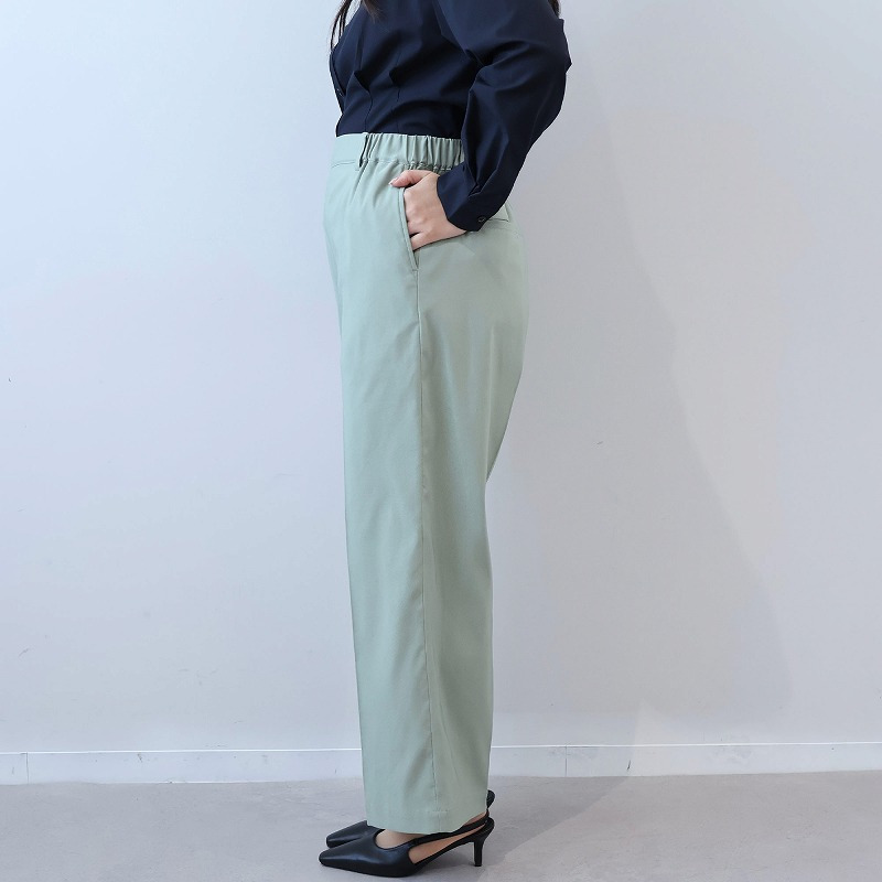 きちんと感と快適な穿き心地を両立させた、オフィスやビジネスシーンに最適なストレートシルエットのワイドパンツです。