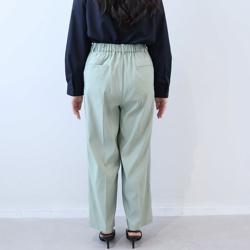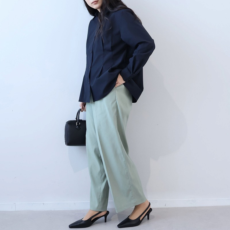 シンプルな薄手のニットや、ピンタックブラウスなどキレイめなトップスをインして着用いただくと、ストレスフリーなのにハンサムで洗練されたオフィススタイルが完成します。