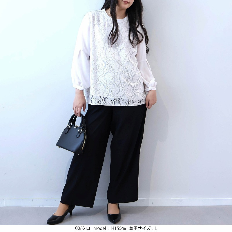 ストレッチ センタープレス ワイドパンツ LL/3L/4L/5L fleur by mint breeze