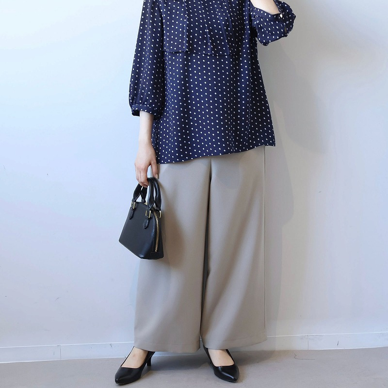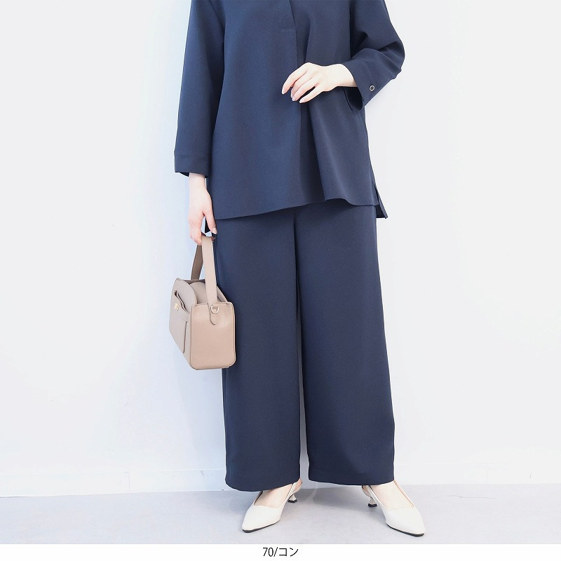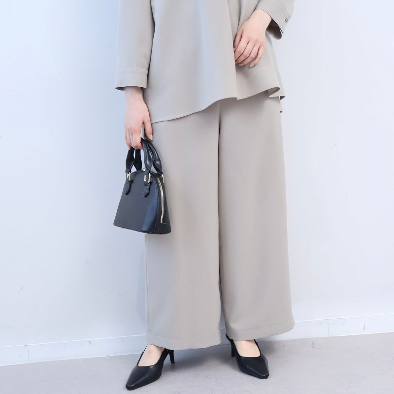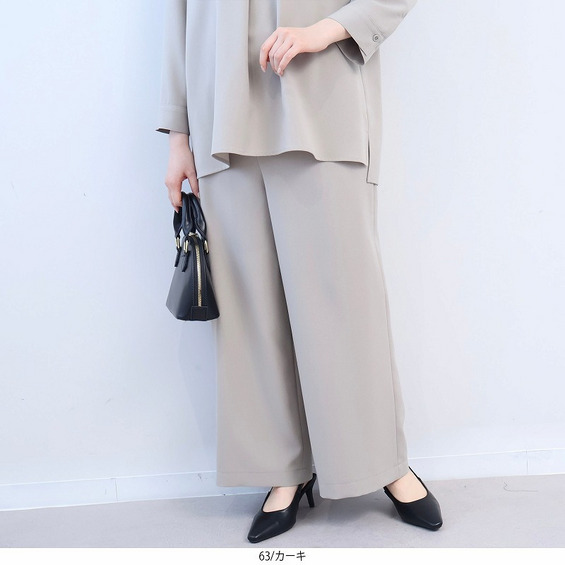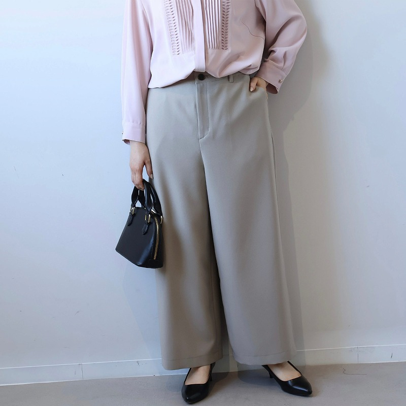 すっきりワイドシルエットが、体型を拾わず真っすぐなラインで脚長効果も期待できます。