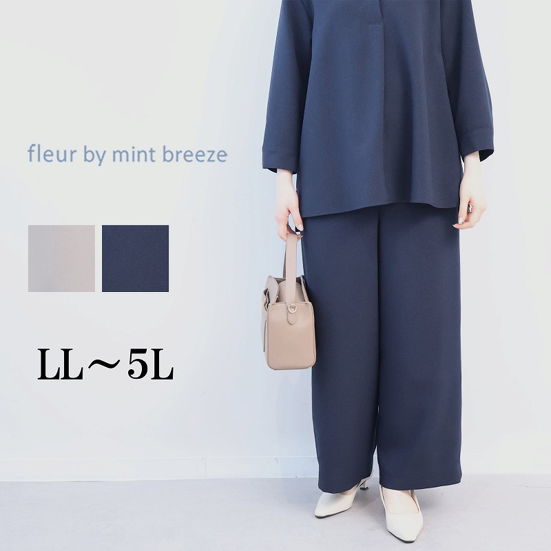 リネンライク ストレッチ ワイドパンツ LL/3L/4L/5L fleur by mint breeze