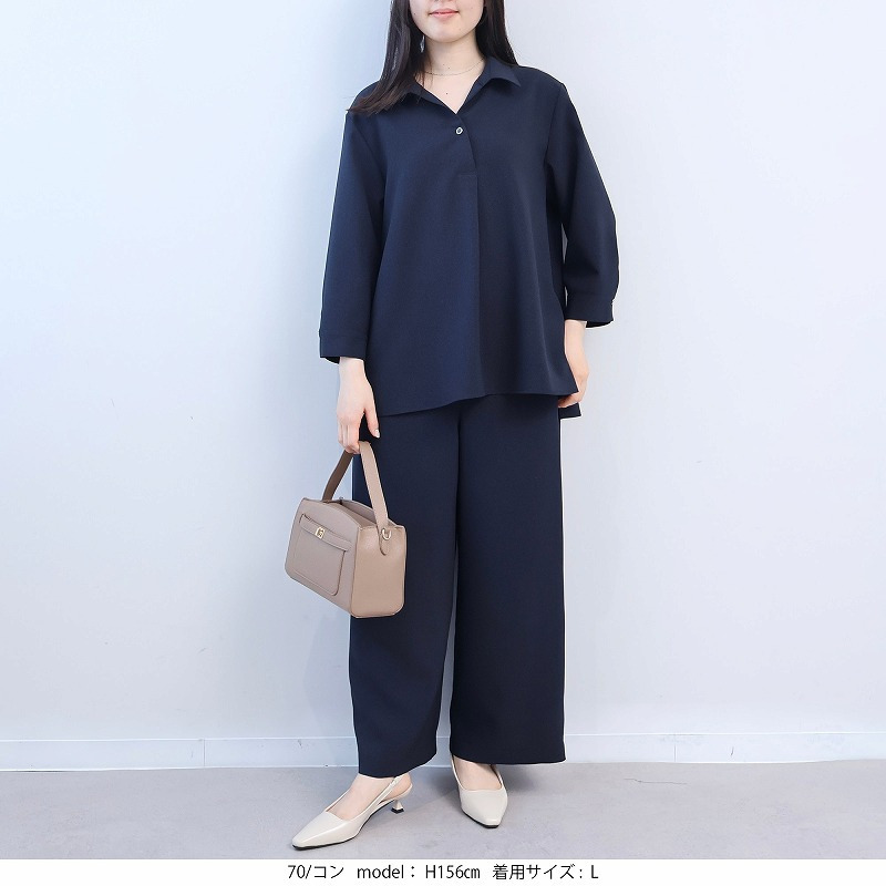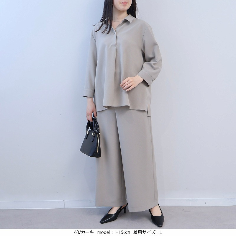 同生地のシャツ(362212)と合わせて頂くと、迷いのないキレイめな通勤スタイルが完成。