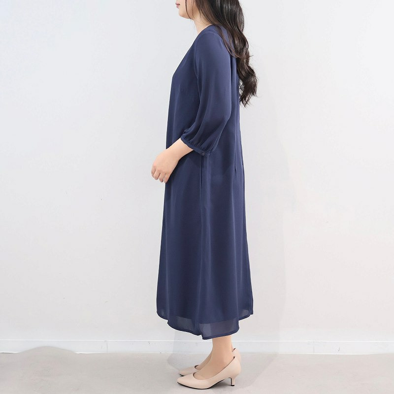 7分袖 ジョーゼット ワンピース LL/3L/4L/5L fleur by mint breeze