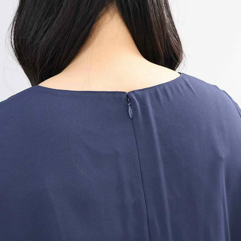 首元は、どんなアクセサリーとも相性の良い上品なラウンドネックを採用。