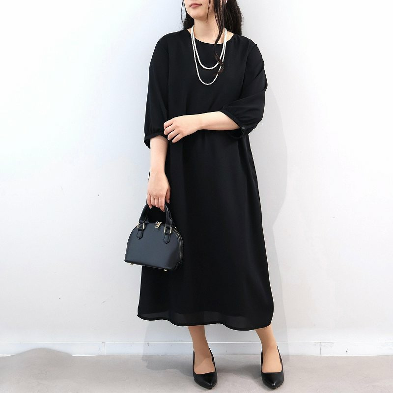 1着持っているだけで、急な式典やお仕事、お出かけにも迷わず対応できる王道のシンプルなベーシックワンピースです。