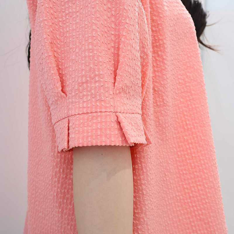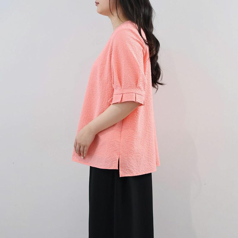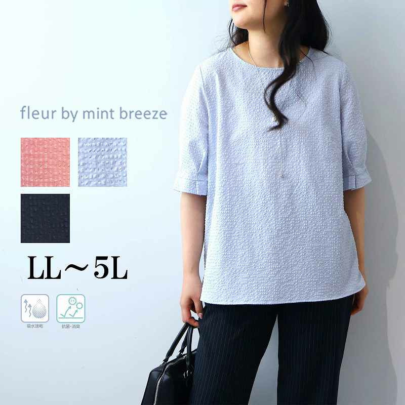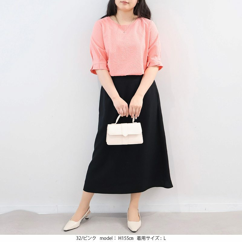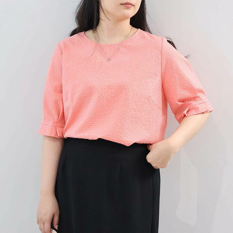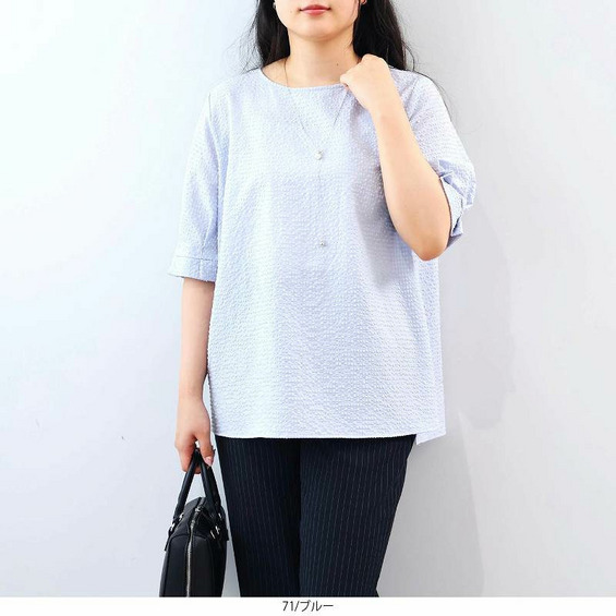 【吸水速乾・抗菌消臭】ポコポコサッカータックスリーブブラウス