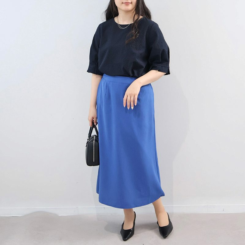 スカートを合わせて頂くと、袖のボリュームが引き立ち、メリハリのある上品でレディーライクな装いが完成します。