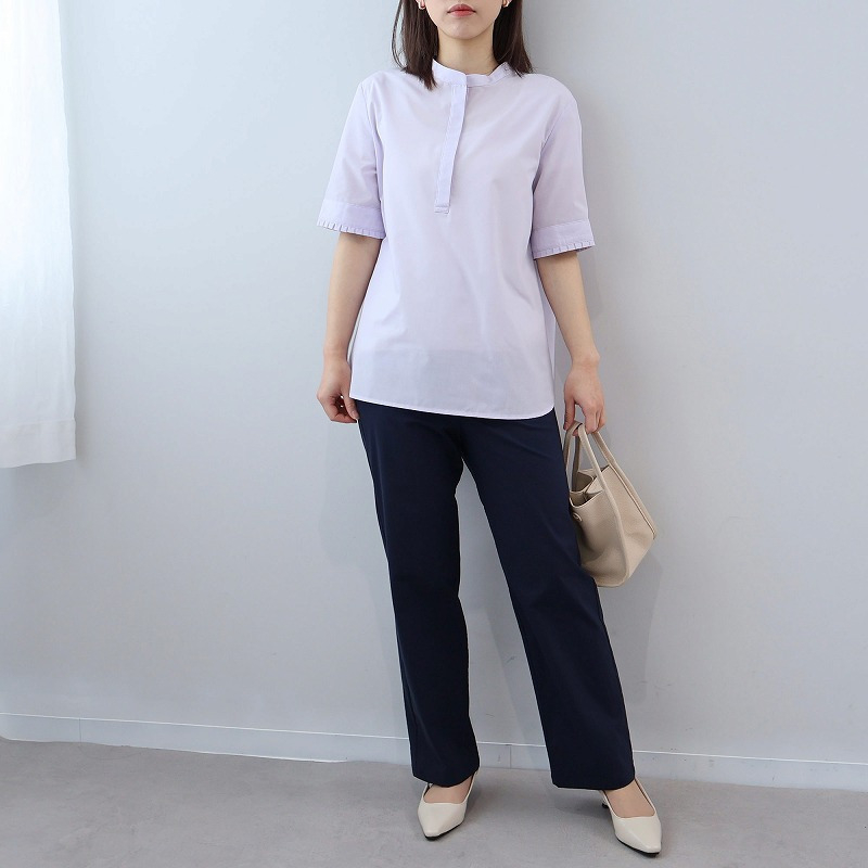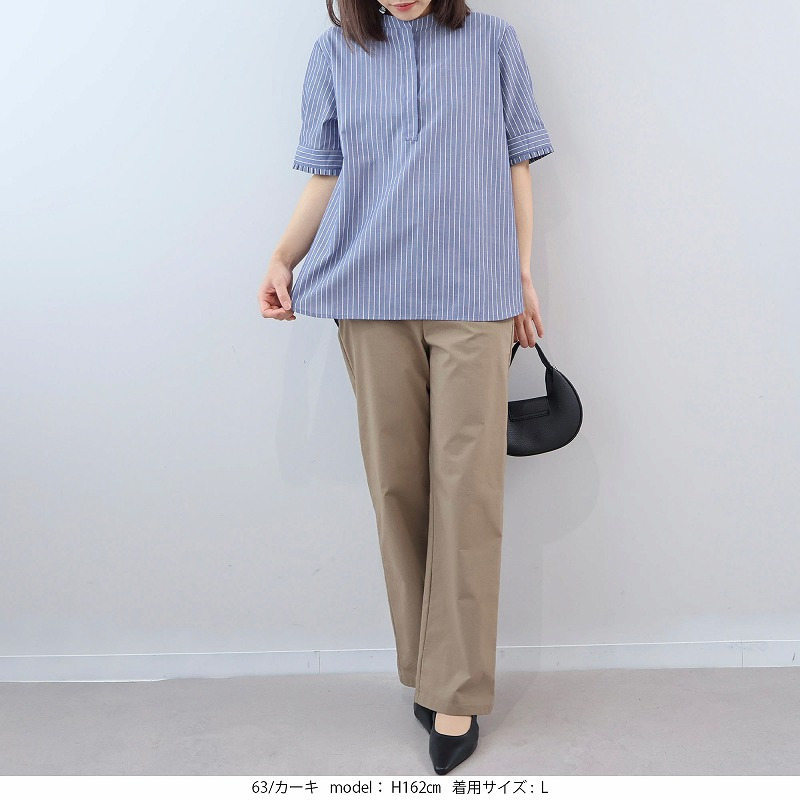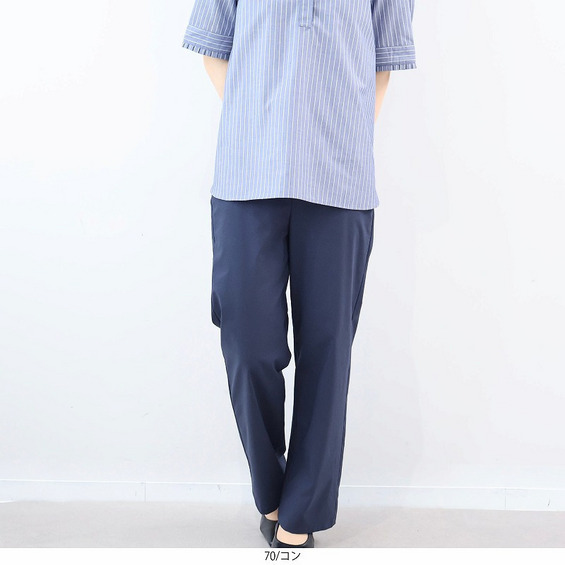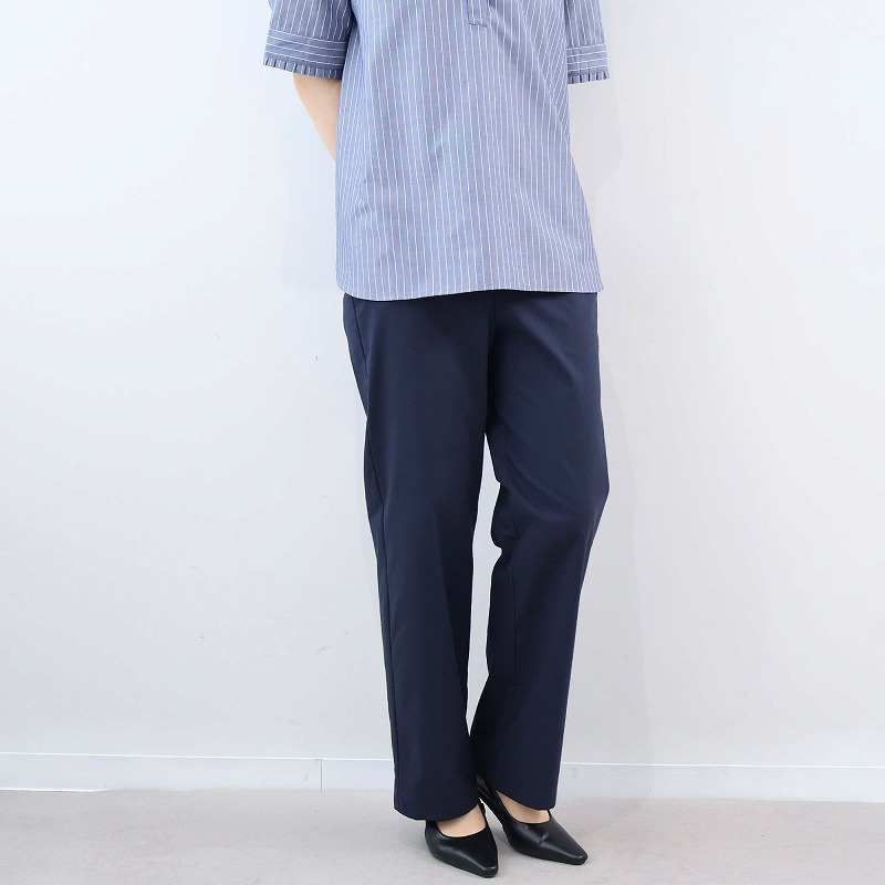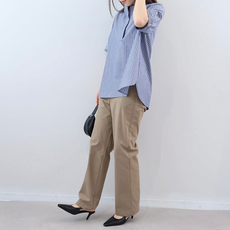 脚のラインを拾わず、ストンと綺麗に落ちるストレートシルエットのパンツです。