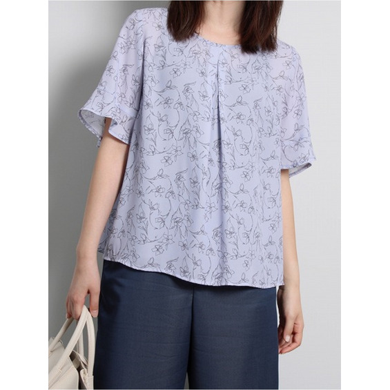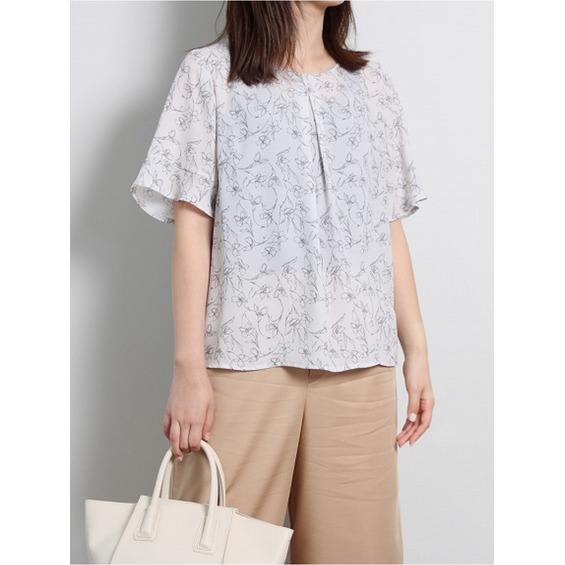 フレアスリーブ 花柄 フェミニン ブラウス / 大きいサイズ ミントブリーズ