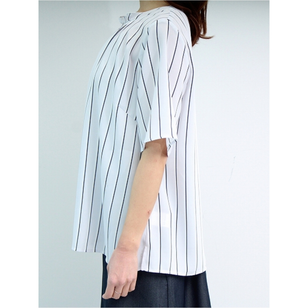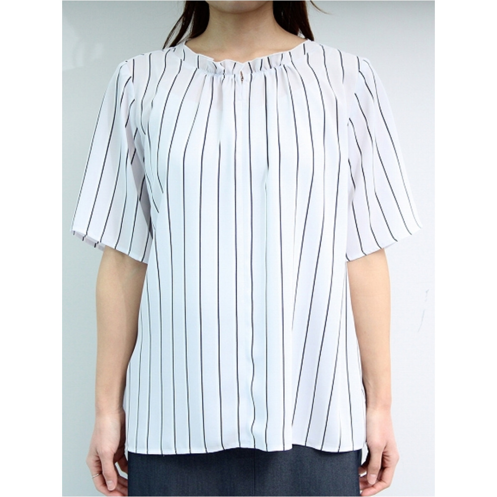 ジョーゼット ストライプ 半袖 ブラウス 大きいサイズ レディース