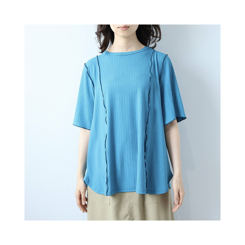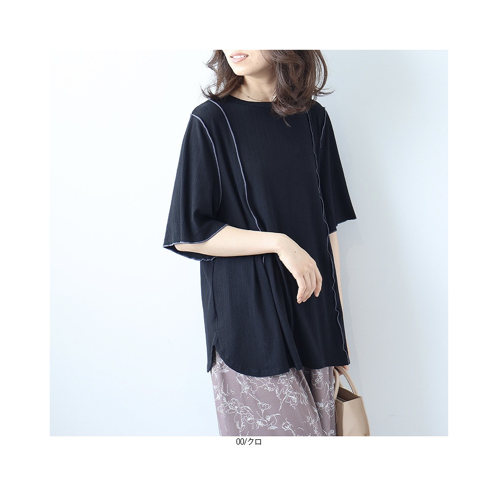 身体のラインを拾いにくいランダムテレコ素材で、自然な縦ラインを演出し、すっきり見えが叶います。