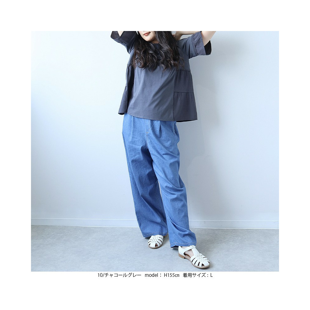 【タイムセール】異素材切替えティアードブルオーバー