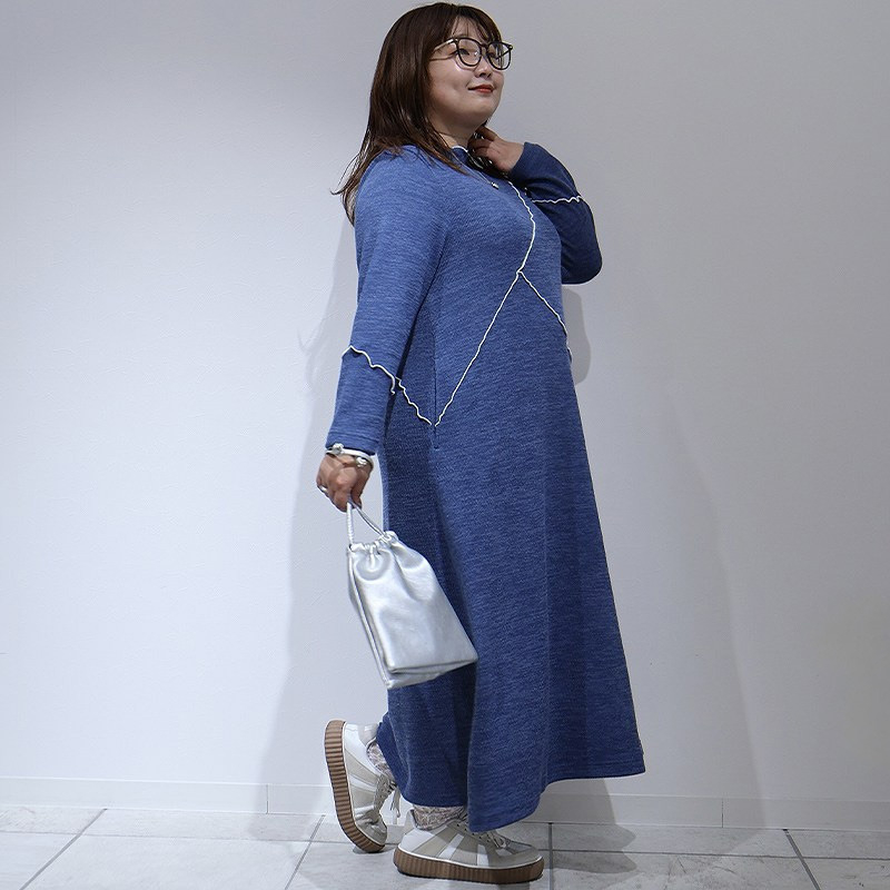 ロング丈なので足元はスニーカーでカジュアルに、ブーツやヒールでフェミニンな印象にと様々な雰囲気を楽しめます。