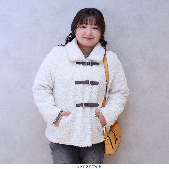 このボアジャケットは、トレンドのバックルデザインが特徴で、いつものleswelとは一味違う印象にしました。