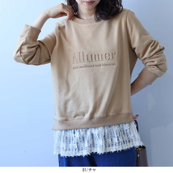 最大のポイントは、裾にあしらったふわふわのフェザー素材。まるでシャツを重ね着しているかのようなレイヤード風デザインで、気になるお腹周りやヒップラインを自然におしゃれにカバーしてくれます。