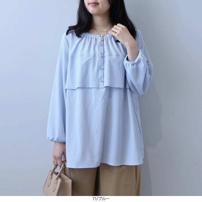 • シアサッカーフリルブラウス LL/3L/4L/5Lleswel3