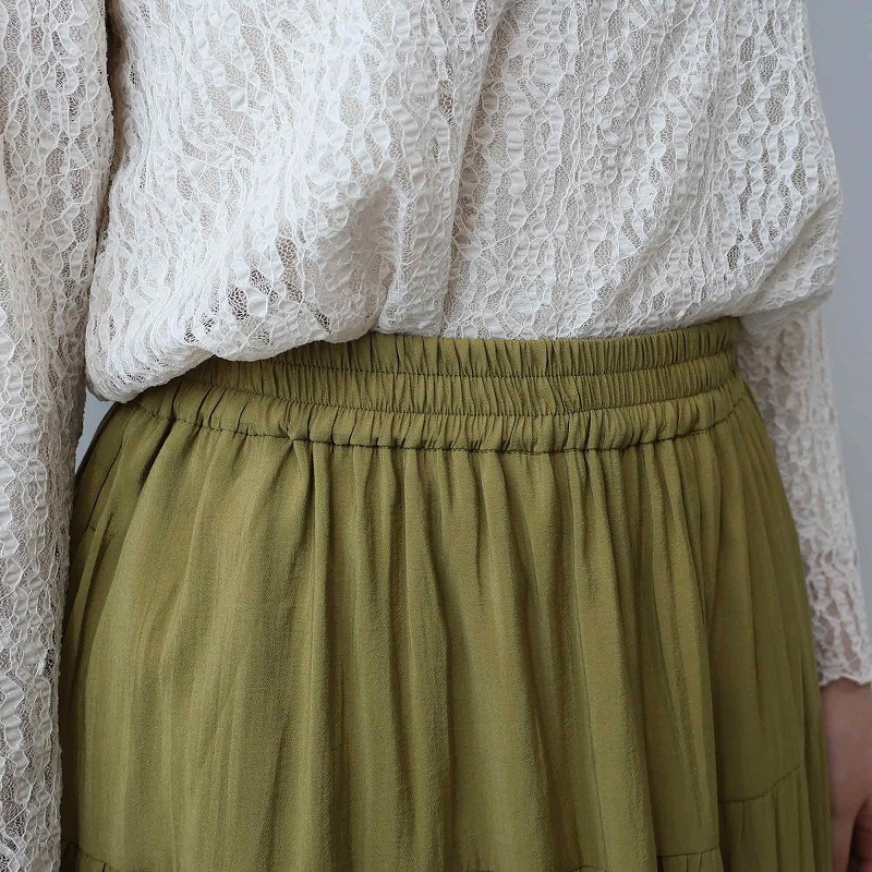 歩くたびにエアリーな生地が揺れ、フェミニンなムードを高めます。
