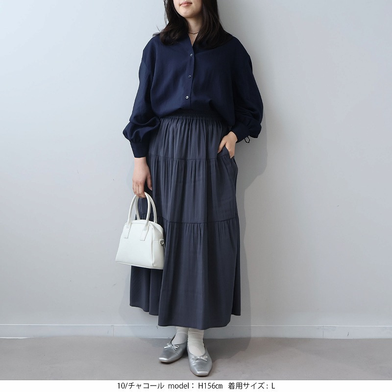 ティアードデザインでありながら、着膨れせず、上品で落ち感のあるAラインシルエットを保ちます。