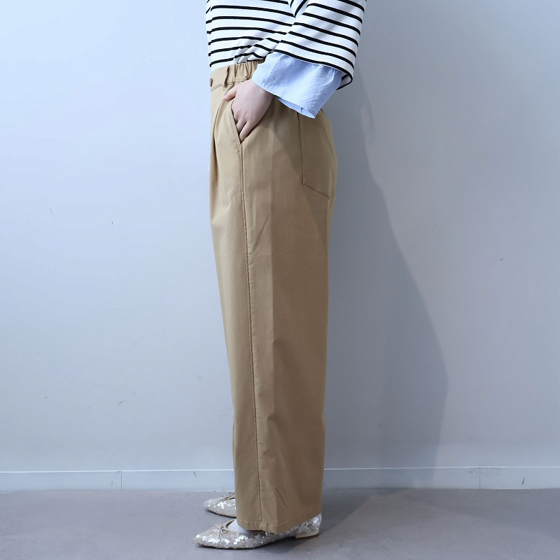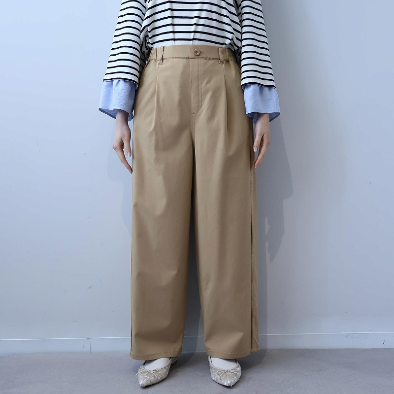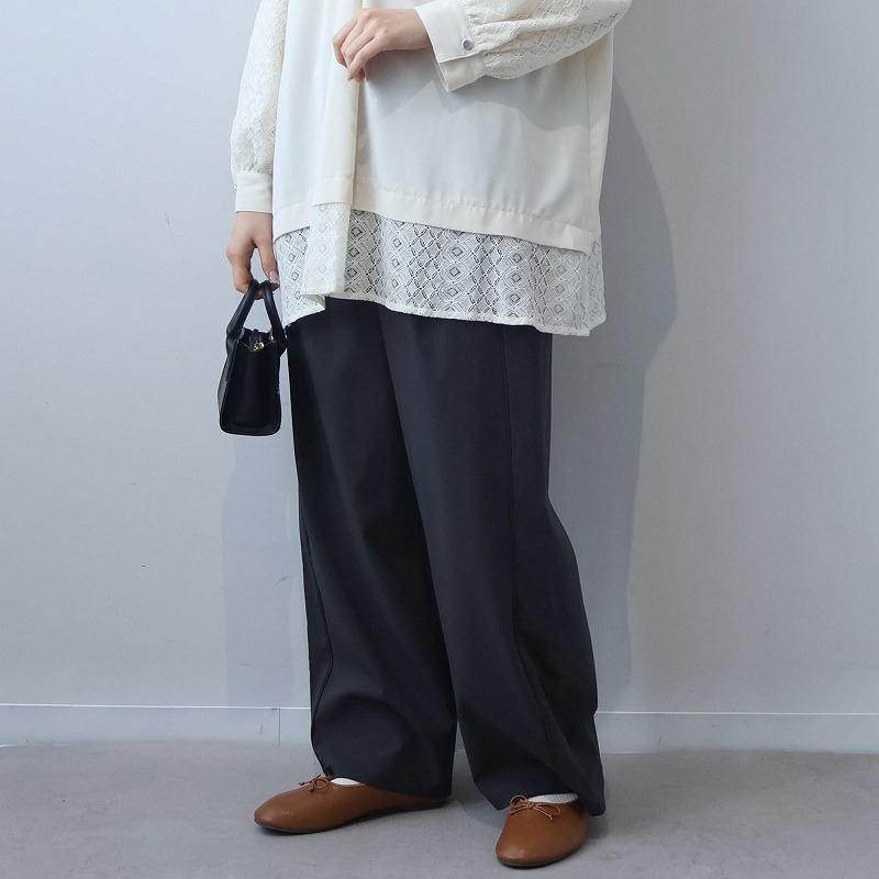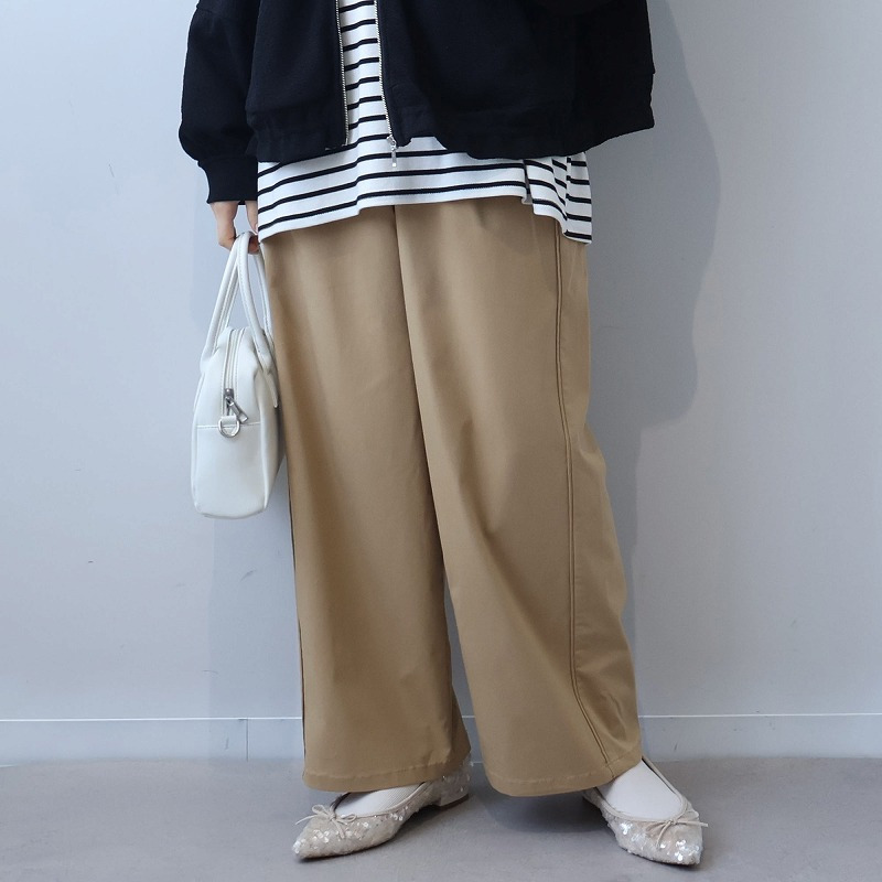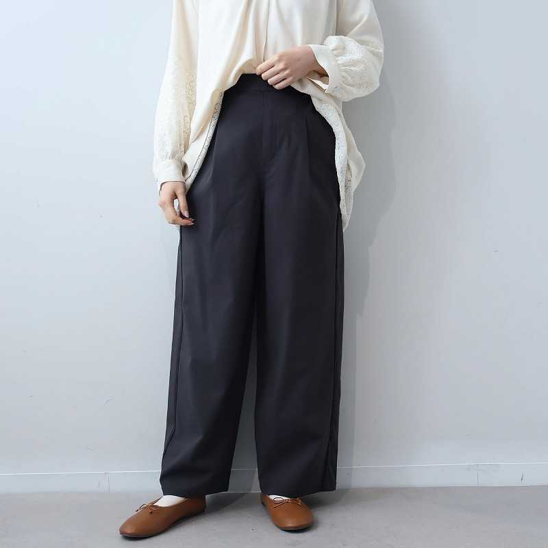 カジュアルなイージーパンツの楽さと、キレイめなスラックスの美しさを兼ね備えたストレートシルエットのワイドパンツです。