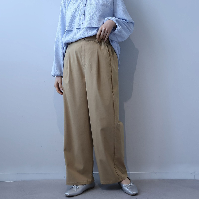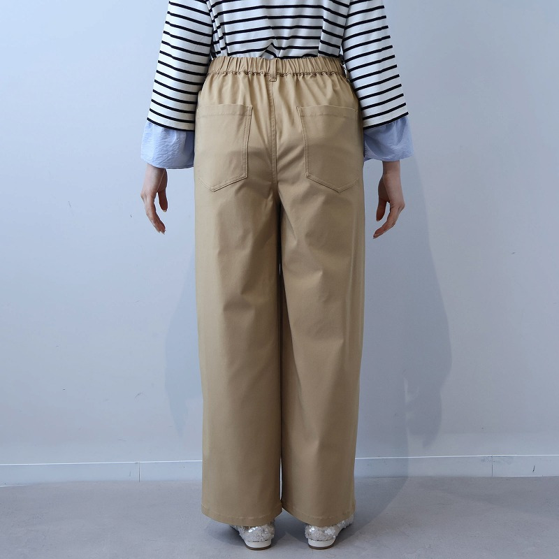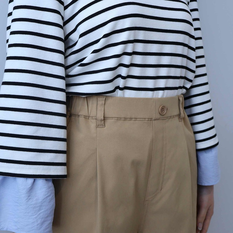 シャツや、シンプルなニットをインして着用いただくと、脇のパイピング切替えがアクセントとなり、リラクシーなのに手抜き感のない上品なキレカジスタイルが完成します。