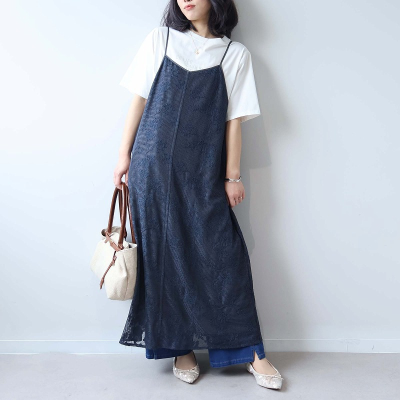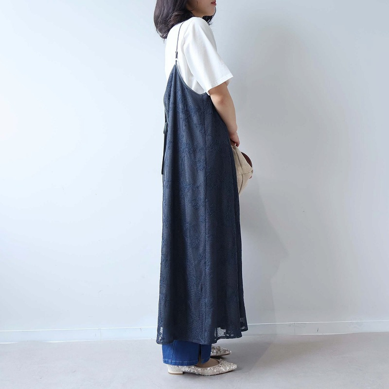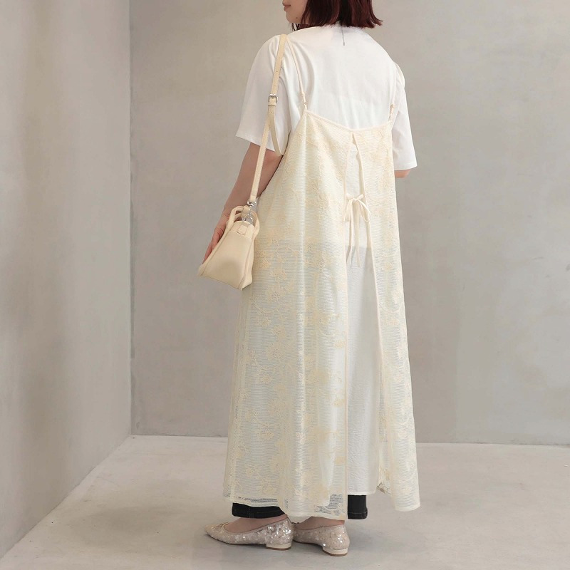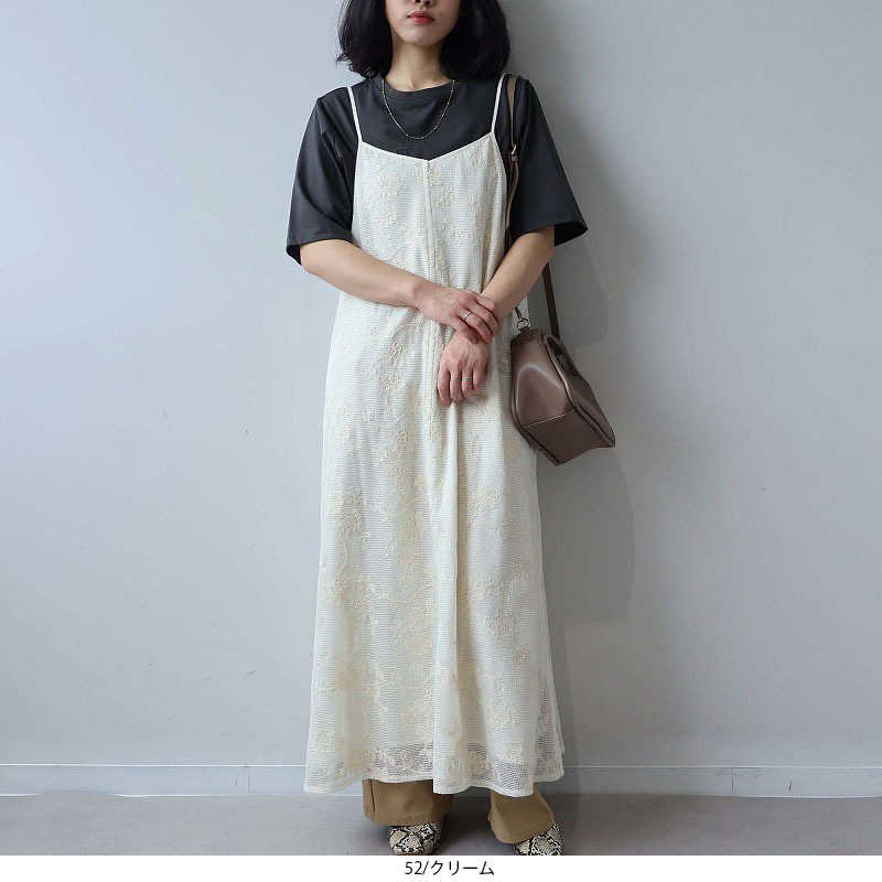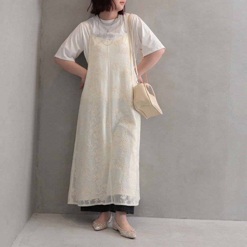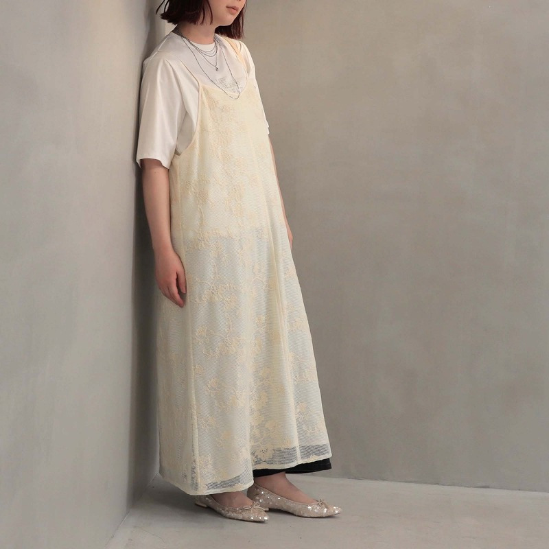 総レースが大人フェミニンなムードを高めるキャミワンピースです。レイヤード次第で、幅広い着こなしが楽しめる1着。
