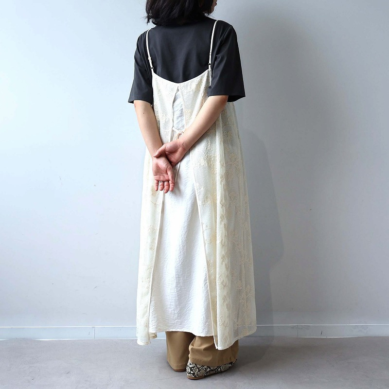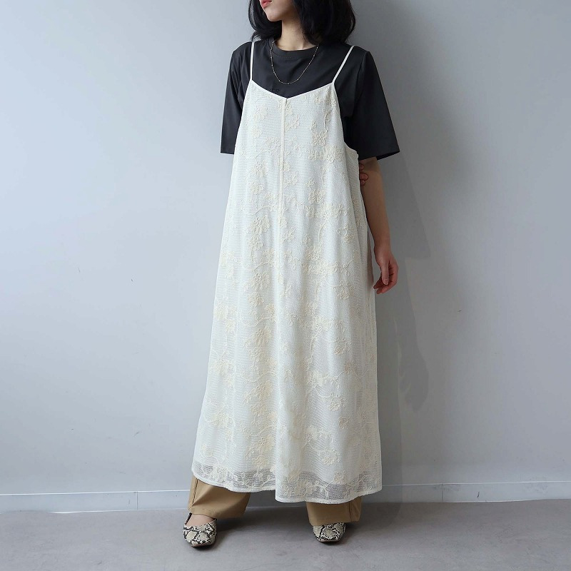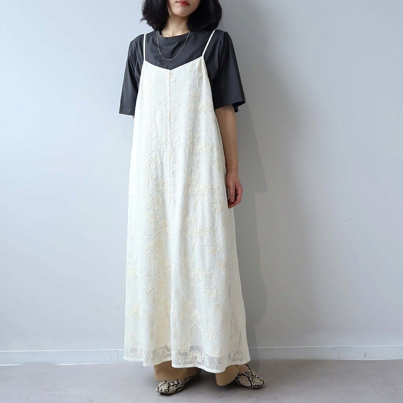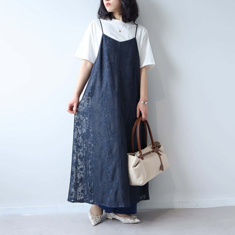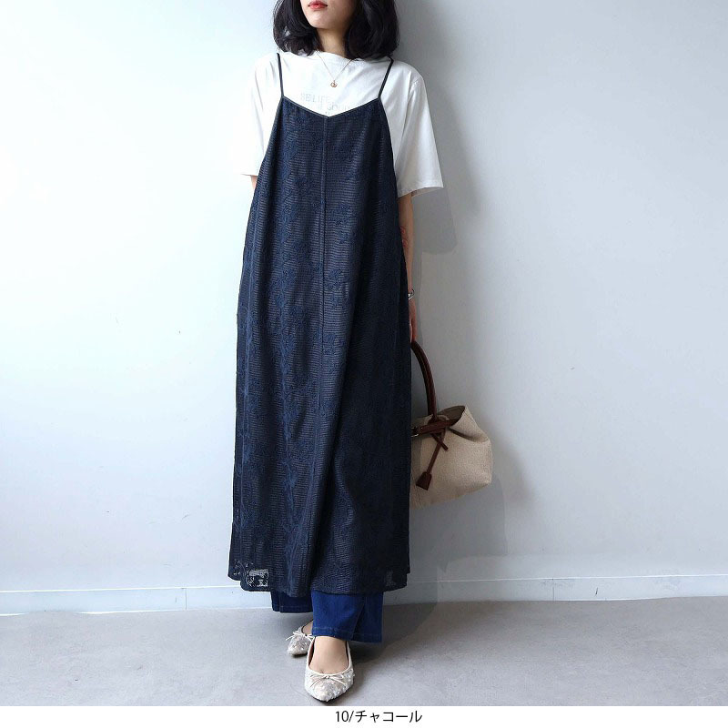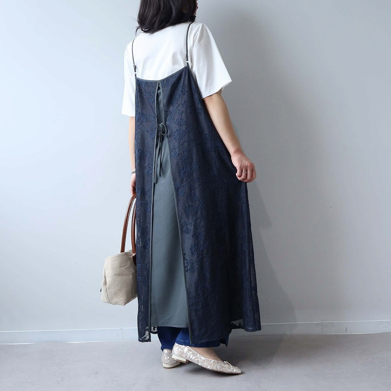 総レースが大人フェミニンなムードを高めるキャミワンピースです。レイヤード次第で、幅広い着こなしが楽しめる1着。