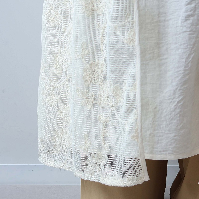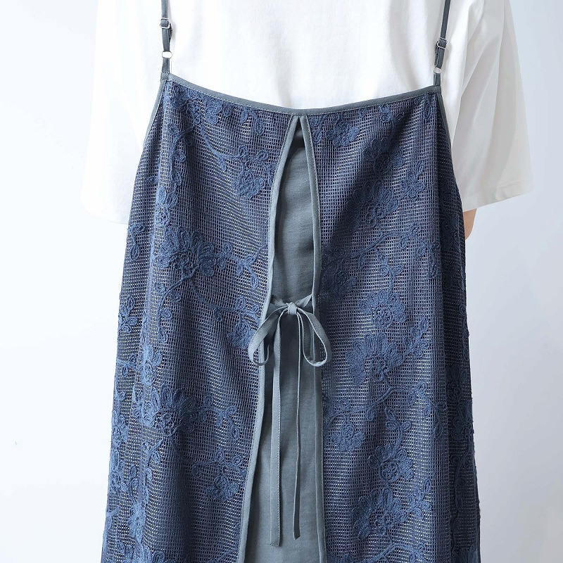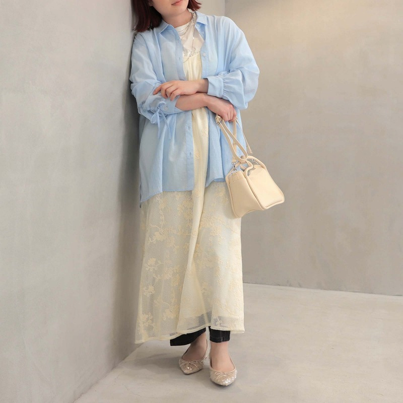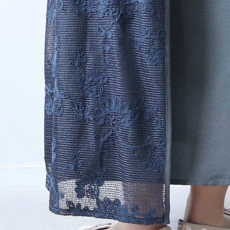 Tシャツのようなカジュアルなトップスとレイヤードして頂くと、ナチュラルな素材感とレースの抜け感が、洗練された大人の休日スタイルを演出します。