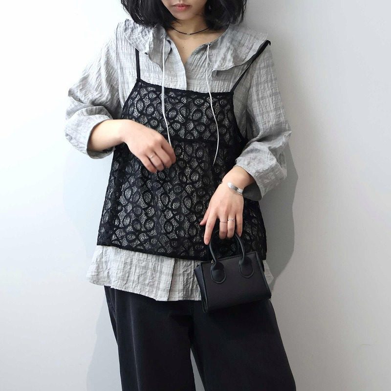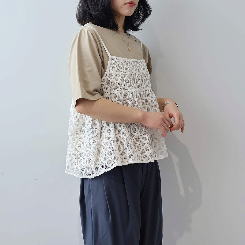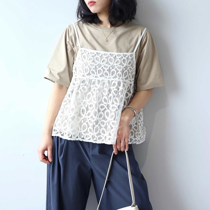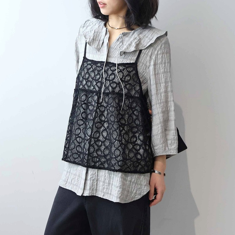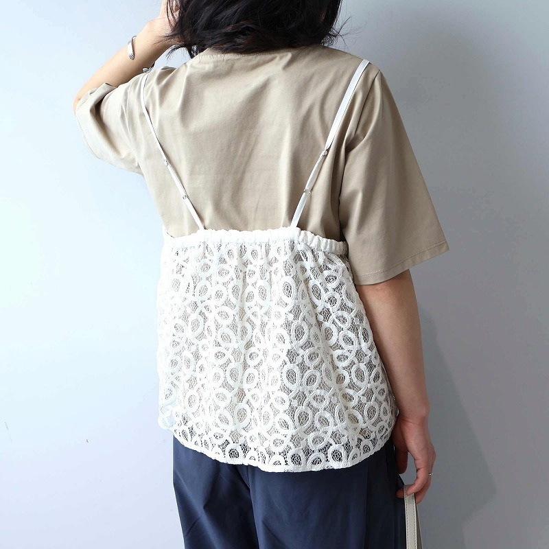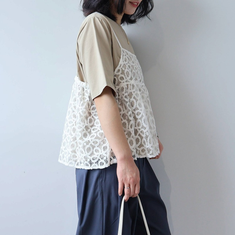 繊細なレースを贅沢に使用した、着こなしに奥行きをもたらすレイヤードスタイルの主役級キャミソールです。