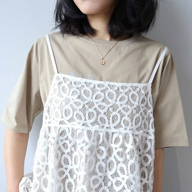 装いに華やぎを添える。繊細なレースを重ねる旬のレイヤードキャミソール。