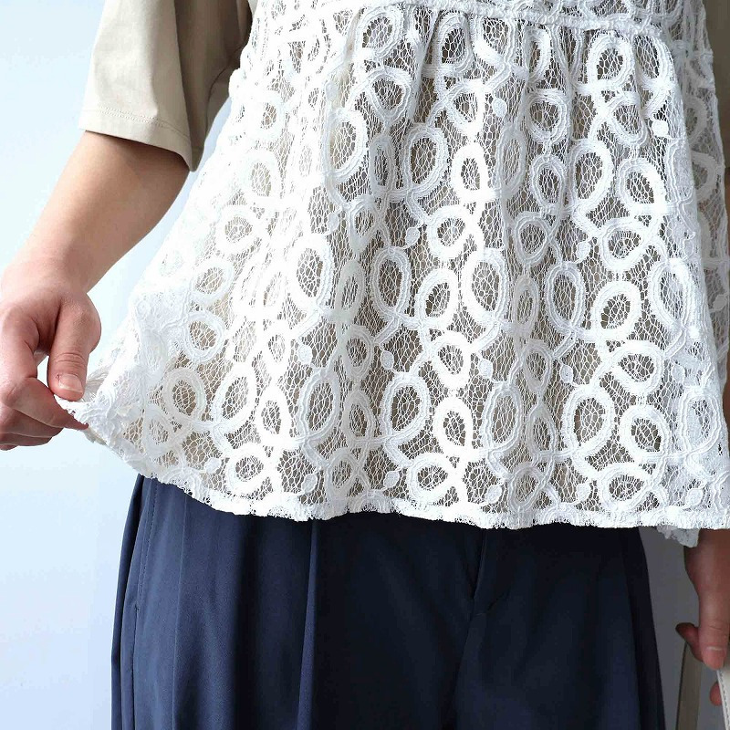 このレースの立体感と透け感が、コーディネートにリュクスな雰囲気を与えます。