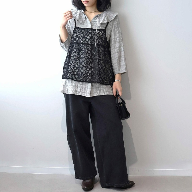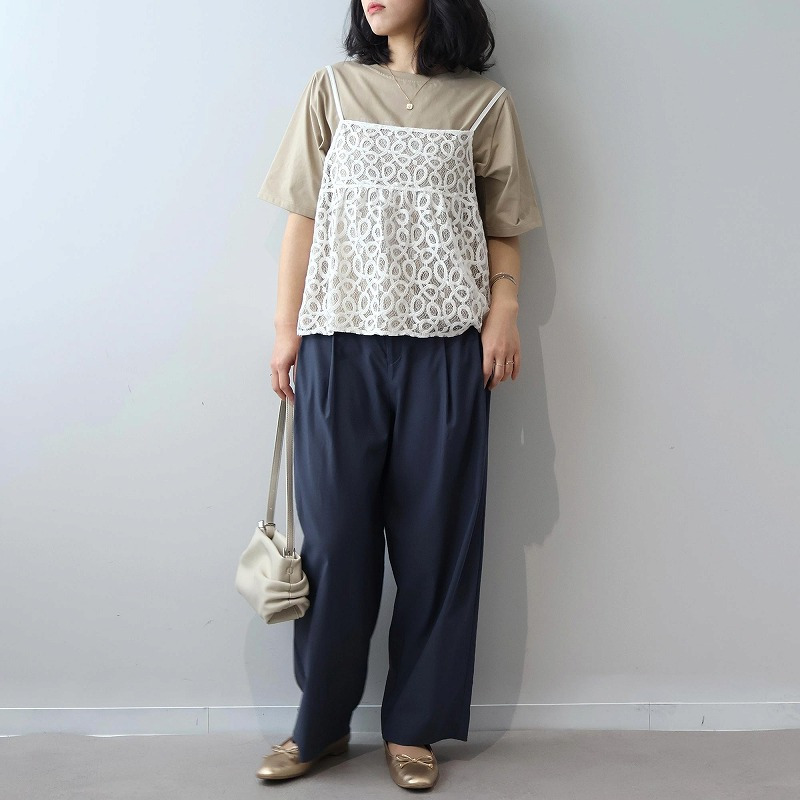 デニムやワイドパンツと合わせると、レースの持つ甘い雰囲気が際立ち、こなれたカジュアルスタイルが楽しめます。