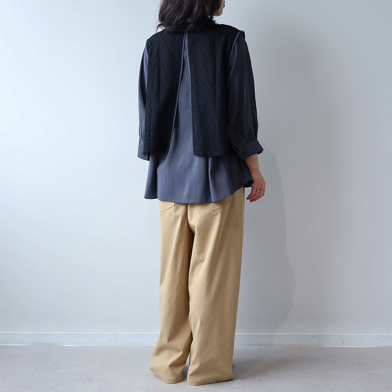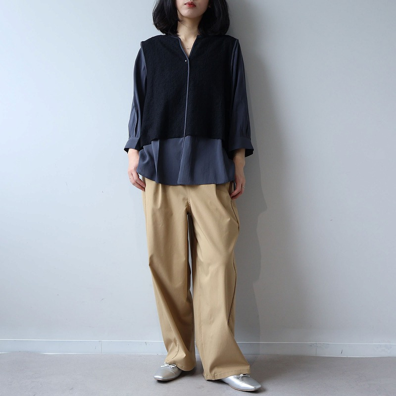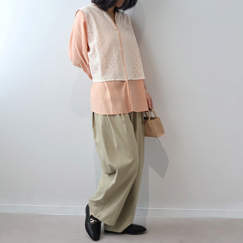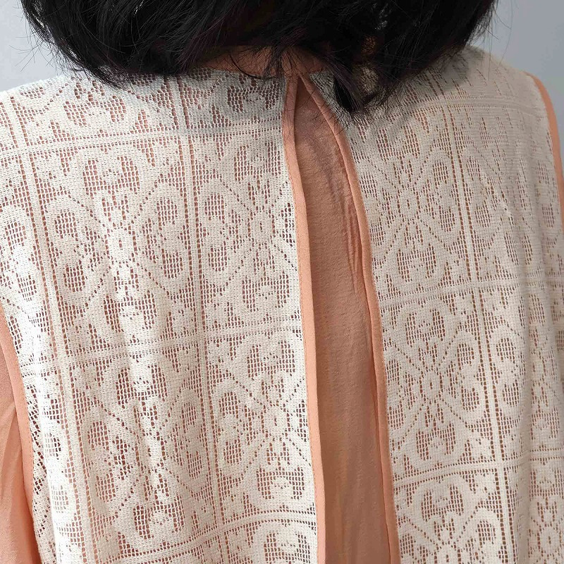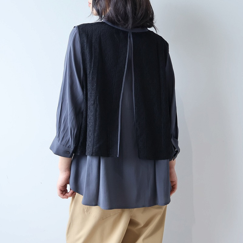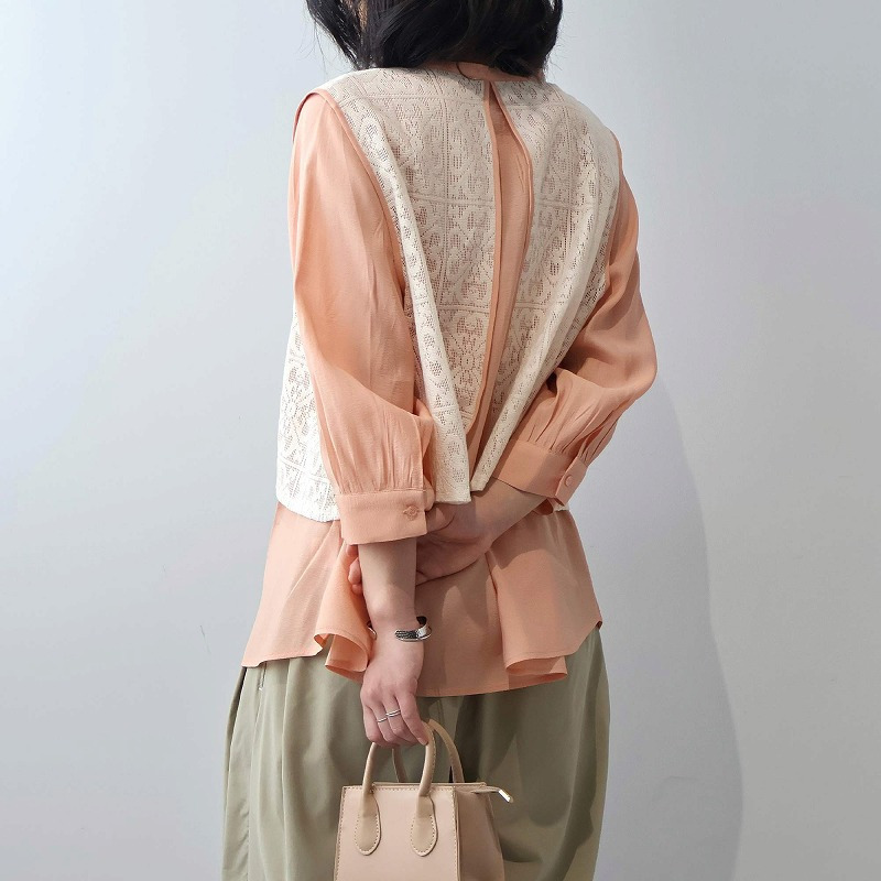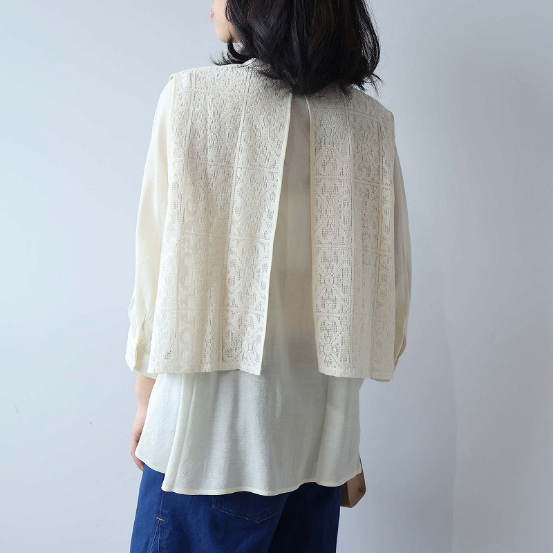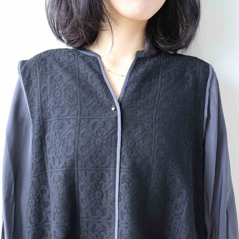 まるでレースのベストを重ねたような、一枚でコーディネートが完成するドッキングデザイン。