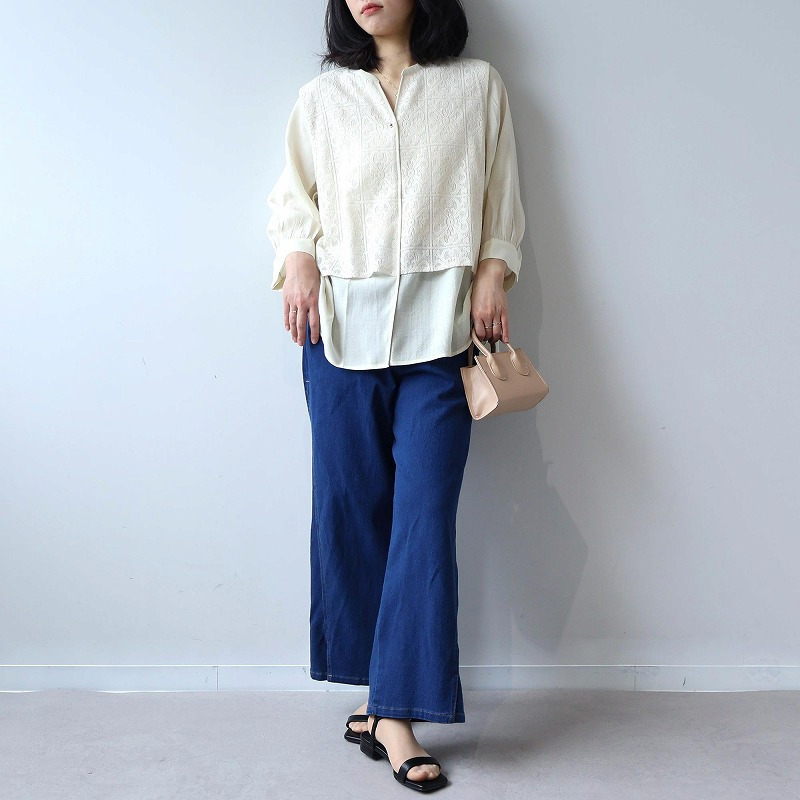 デニムやリネンパンツと合わせれば、程よく力の抜けた、こなれ感のある大人カジュアルな着こなしが楽しめます。