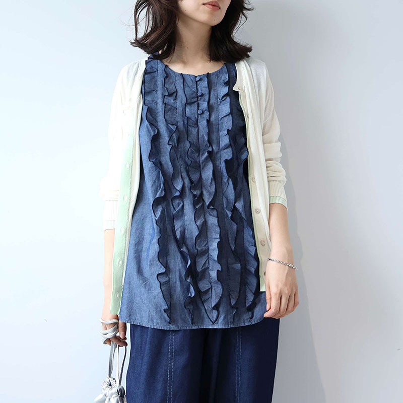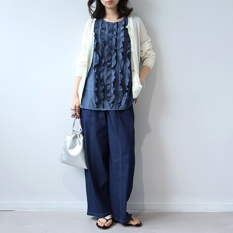 1枚で着るだけでサマになる華やかさがありつつ、デニムならではの親しみやすさも兼ね備えた、大人の日常着にふさわしい洗練された1着です。