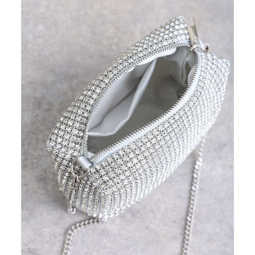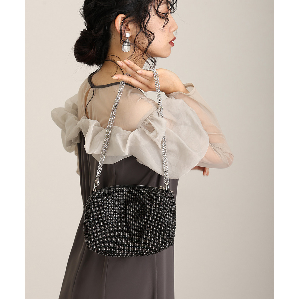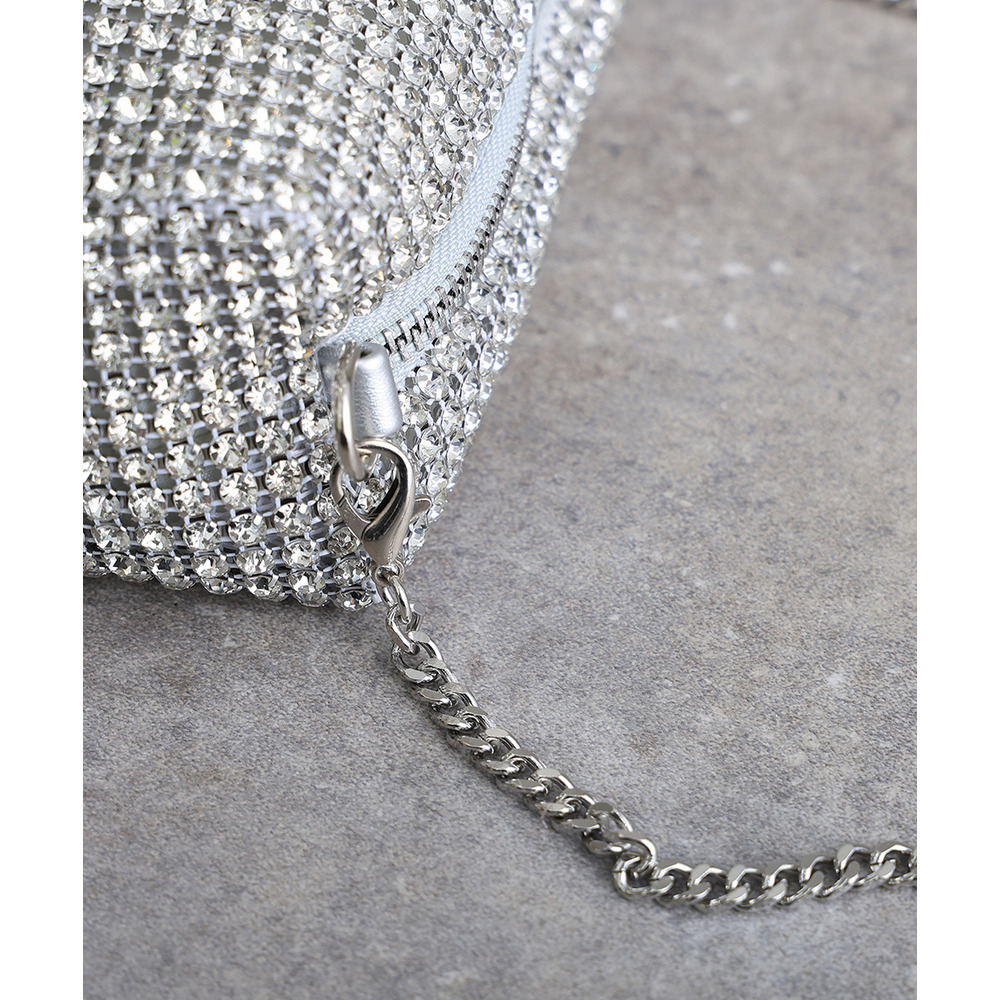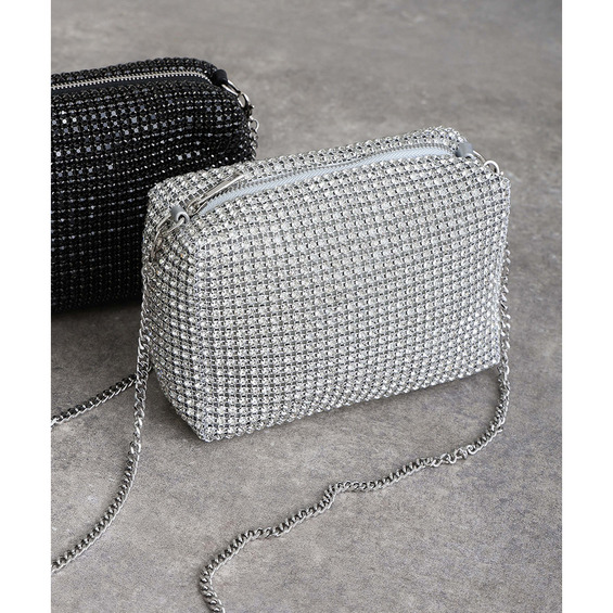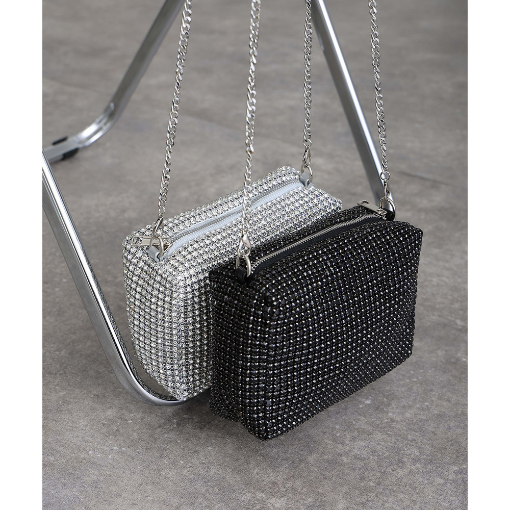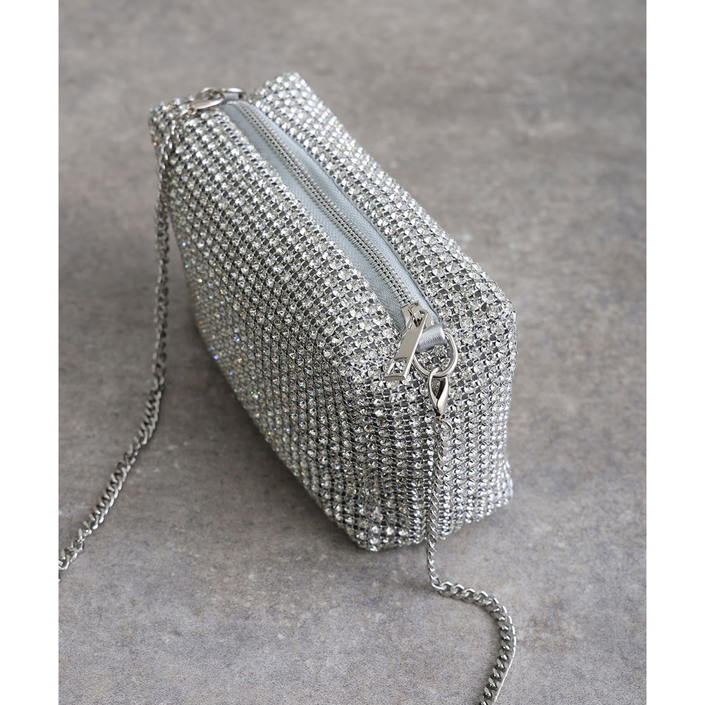 バッグ全体に施されたビジューが煌めくトレンドライクなバッグ。