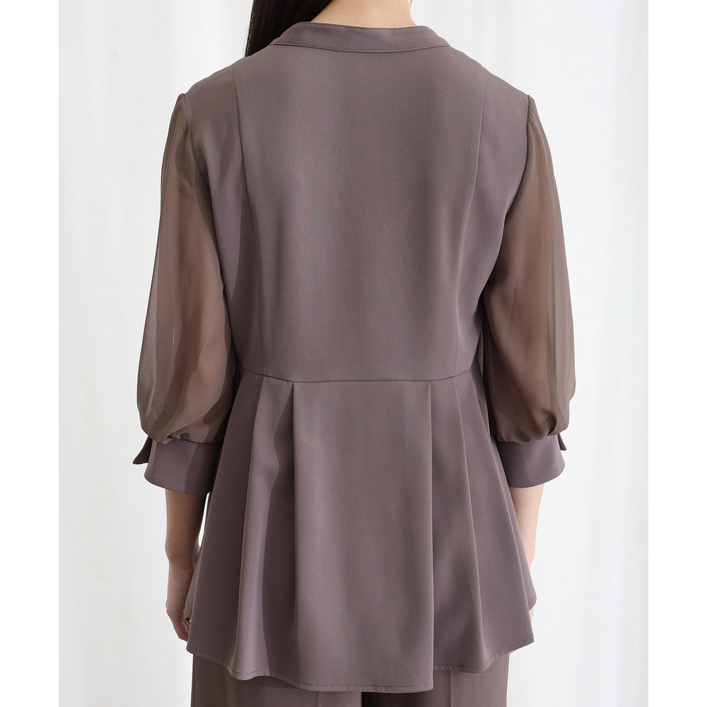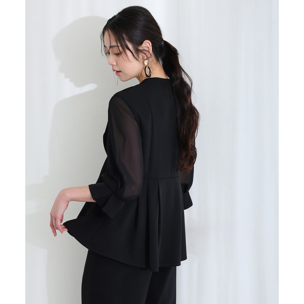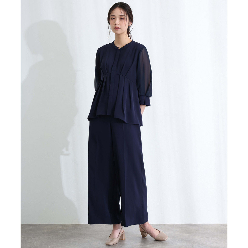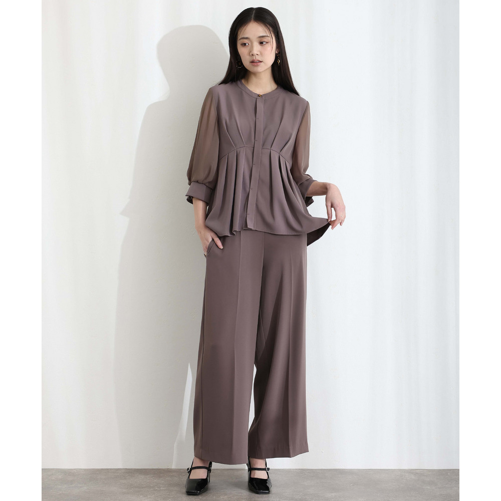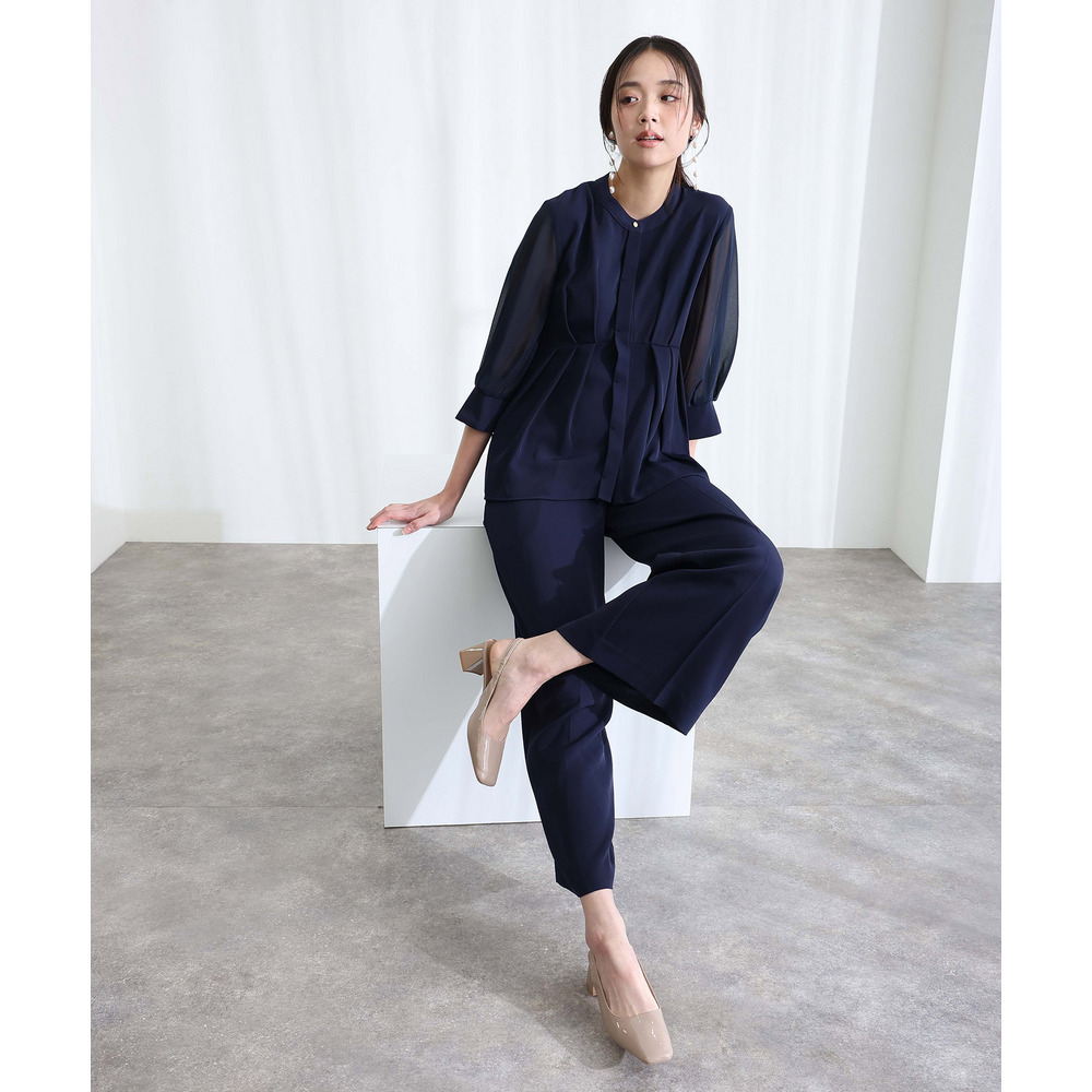 エレガントなペプラムトップスとワイドパンツの2点セット。